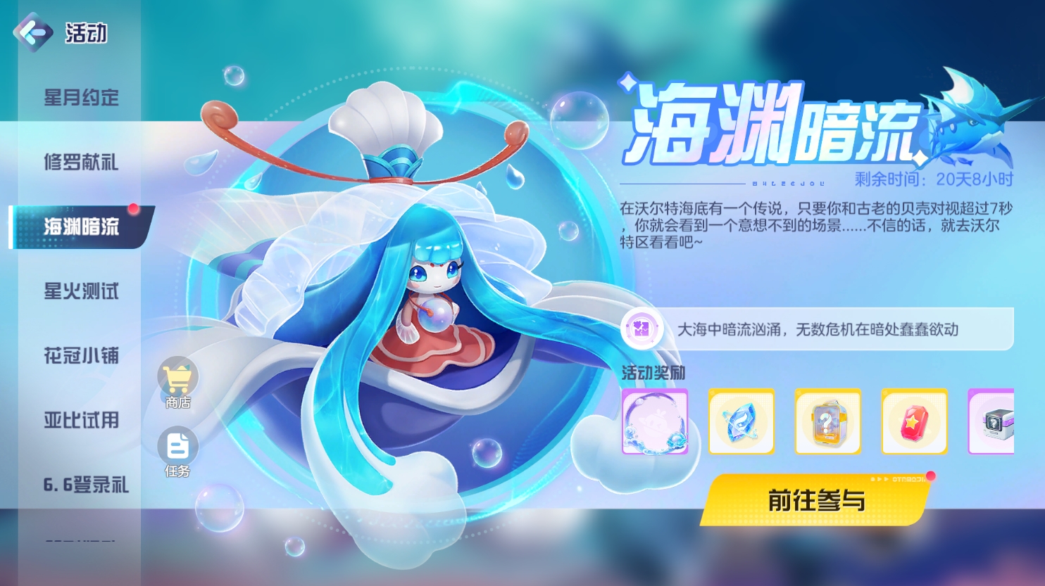 2、在海渊暗流中达成一定条件即可领取活动任务奖励。
