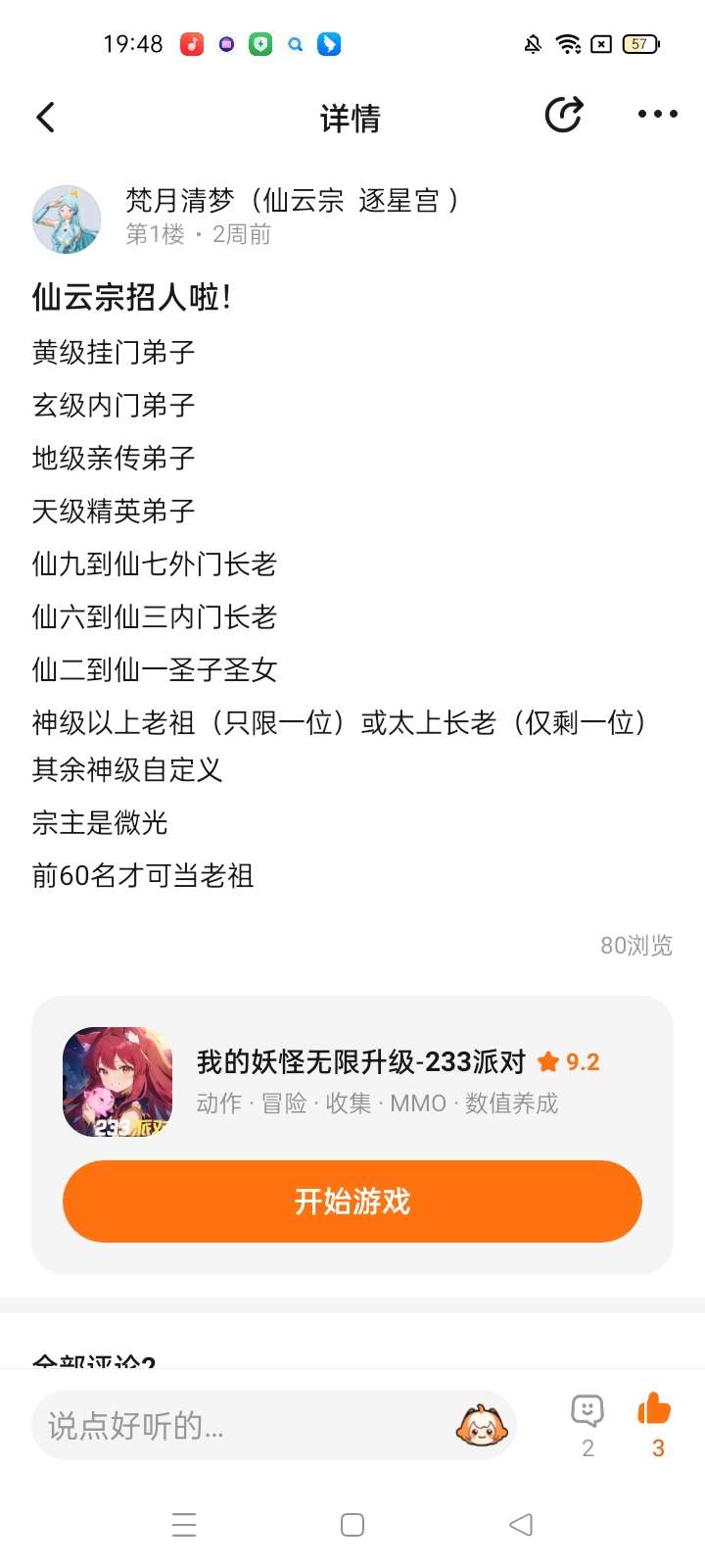 仙云宗招人啦!(太上老祖、老祖和太上长老已有)其余神级加入自定义段位 加入后一定要改名!