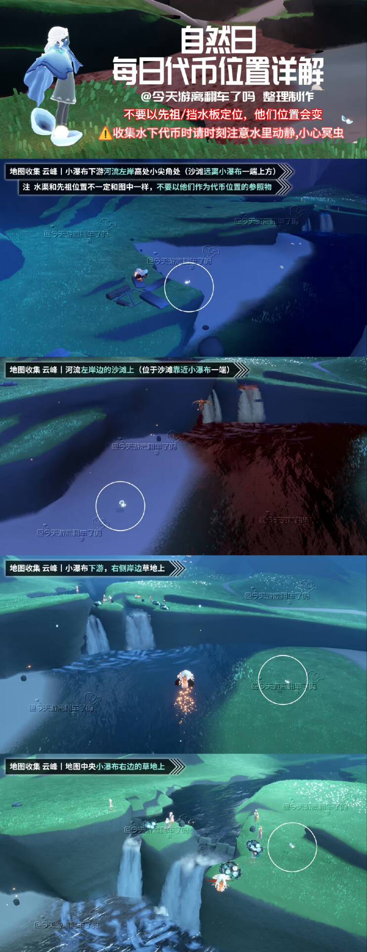 收集水下代币时请留意四周,小心冥虫出没特别机制:云峰落石。潜入水底拔起落石周围的黑暗植物,然后在河堤前烧掉它们。清理可获得烛火(每日可获得一次)