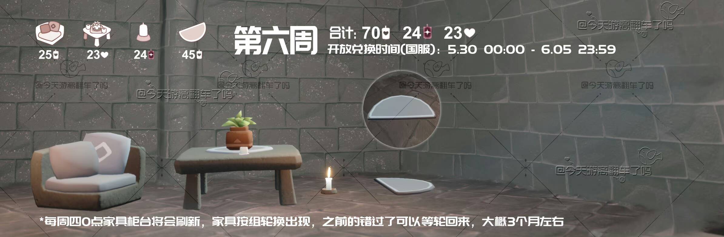 自然日特别魔法[云巢礼物商店魔法盒]: 海龟留言魔法、海龟斗篷、海螺、浅蓝渐变卷发 𝟮.六一活动页面石头剪刀布进行中,今日小光出【石头】,选择【布】或【石头】可赢得奖励 𝟯.筑巢工坊家具柜台已刷新,距离下次刷新还有2天。本周家具:转角沙发、方形茶桌、蜡烛桌灯、半圆形小地毯 𝟰.筑巢季季节任务三已开放
