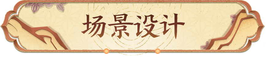 芈月侧身伫立戏台之上。周围的景物最大化还原皮影戏中的传统造型,如卷草纹花边、云纹边框、山石植被等。光照上也进行处理,营造皮影戏演出时的昏黄氛围。