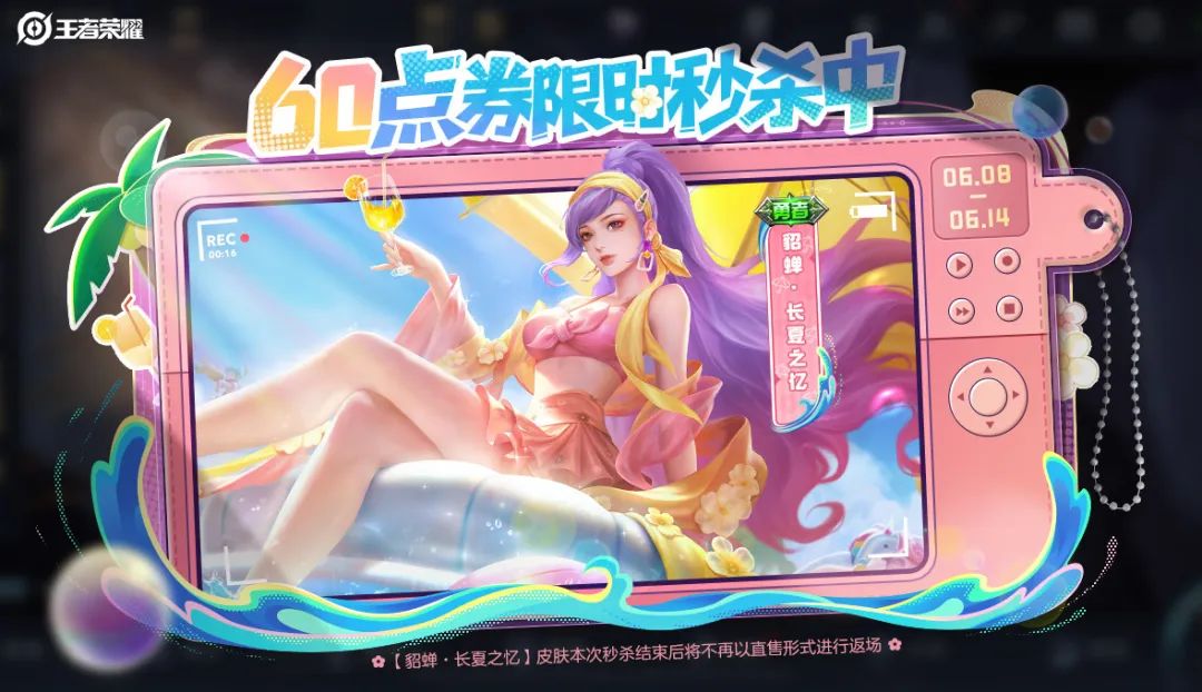 貂蝉60点券秒杀皮肤来啦!貂蝉-长夏之忆将在6月8日0点与大家见面,快一起来看看爆料吧!