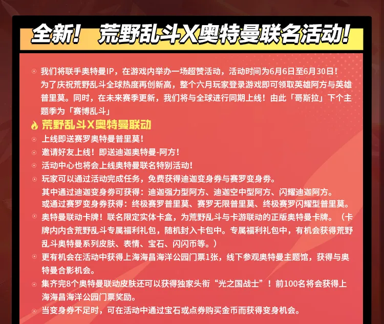 版本更新后,登录即送赛罗奥特曼普里莫皮肤!