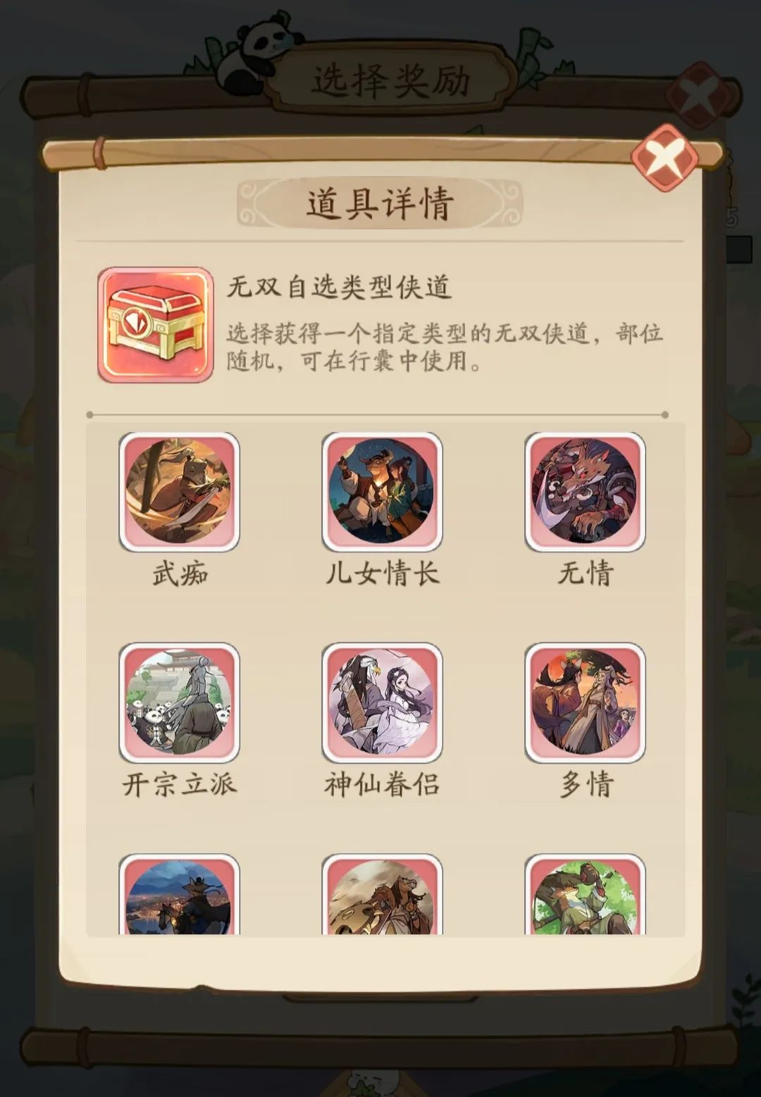 4、开始登山前,少侠需要选择第四层登顶大奖,可选择红颜苏蔓邀约道具银针囊无双自选类型侠道战斗表情等。