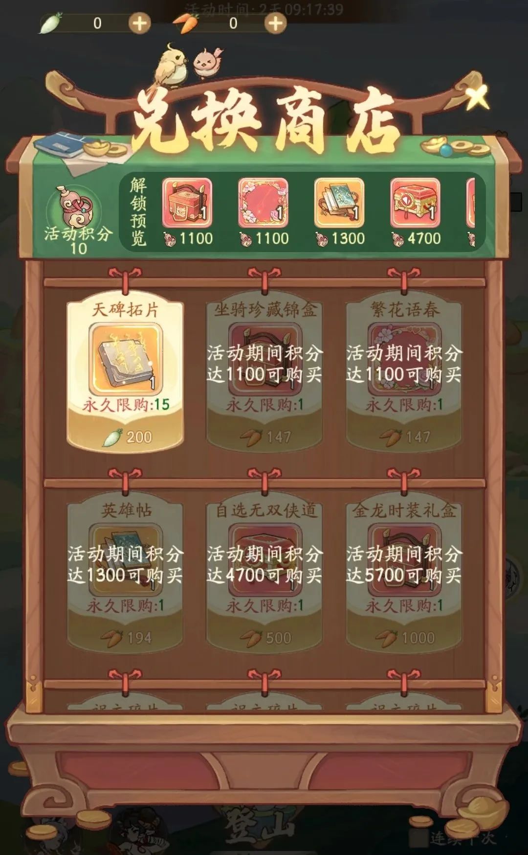 1、活动期间,少侠可以使用窝边草进行登山。
