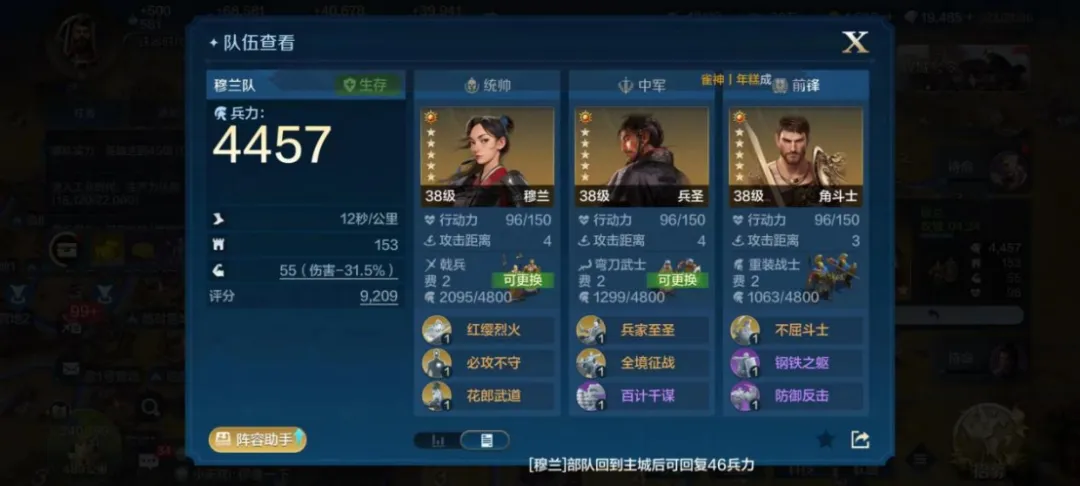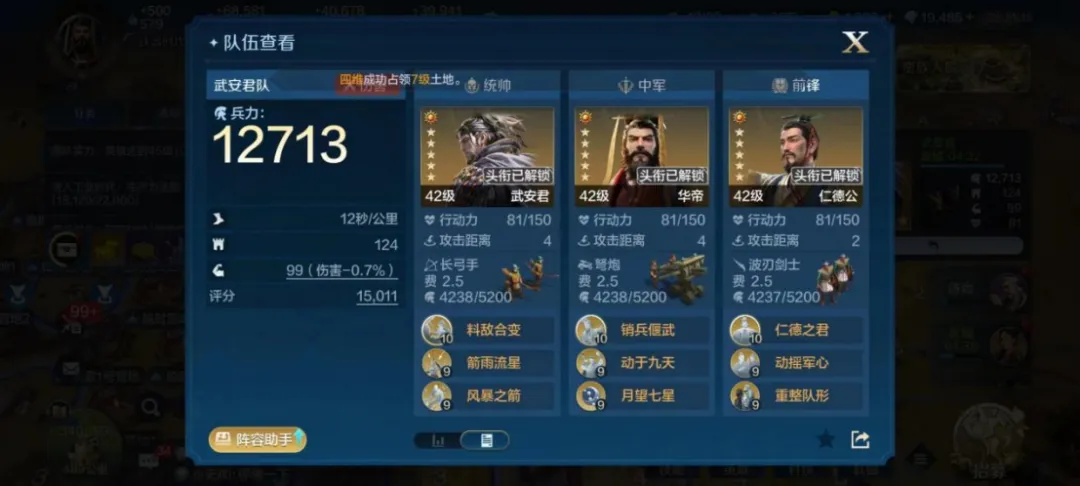 小无双:我的队伍已经转型了,开始是“穆兰首充队”开开荒,后面在八级地转成了华帝法刀,是以华帝和武安君为核心搭建的队伍,完全体是军神和蒙恬。