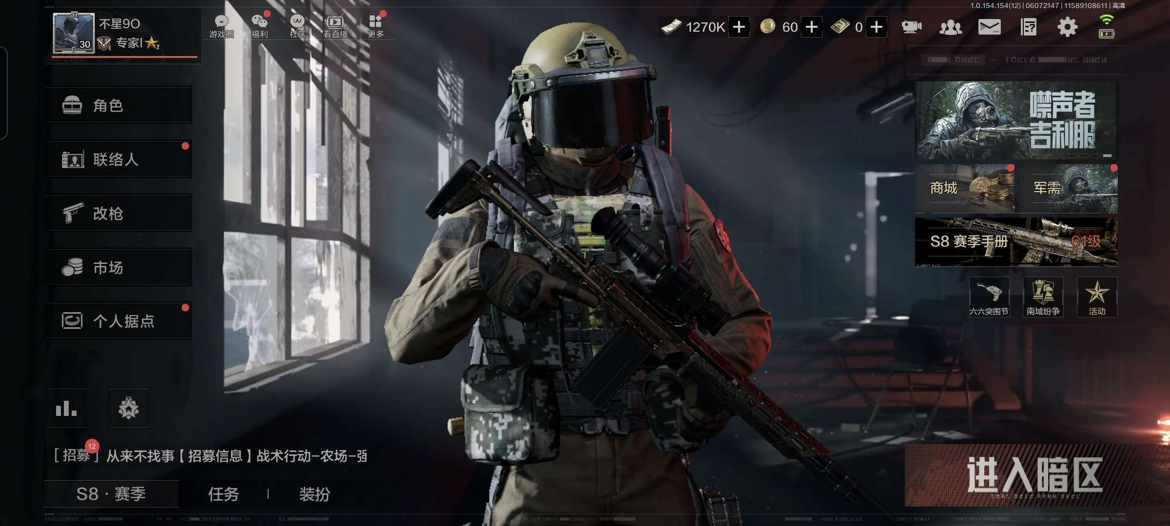 谁能带我打暗区?我的科恩币必须要到1000万,他们才说我只能算一个小打手