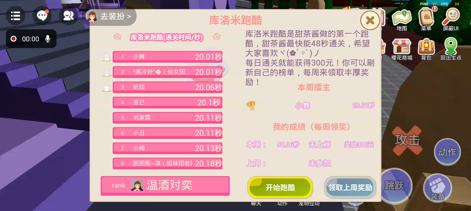 这次玩的库洛米跑酷超级完美