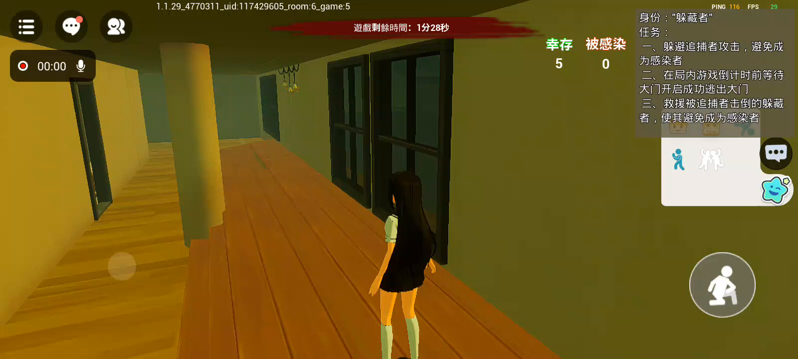 欢迎来到三年二班躲猫猫! 一群小伙伴来到一座废弃校园探险,惊扰了此处的冤魂,一名伙伴受冤魂影响化身恶灵展开追杀,其余人需要净化冤魂打开大门,从恶灵手中逃离此地。 在游戏中你可以伪装成场景中的物品躲起来,也可以在对局中使用道具干扰恶灵的行动帮助自己逃出生天。 赶快加入游戏,和小伙伴一起游玩吧!