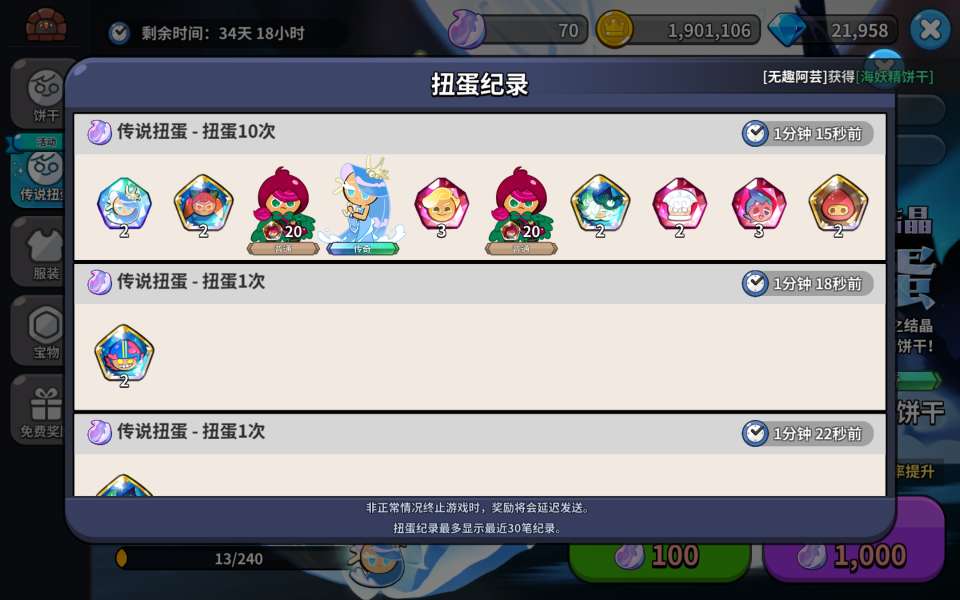 第一个十连就中了,果然上赛季莓果保底不是没有原因的。啊啊啊啊,海妖精我爱你!!!