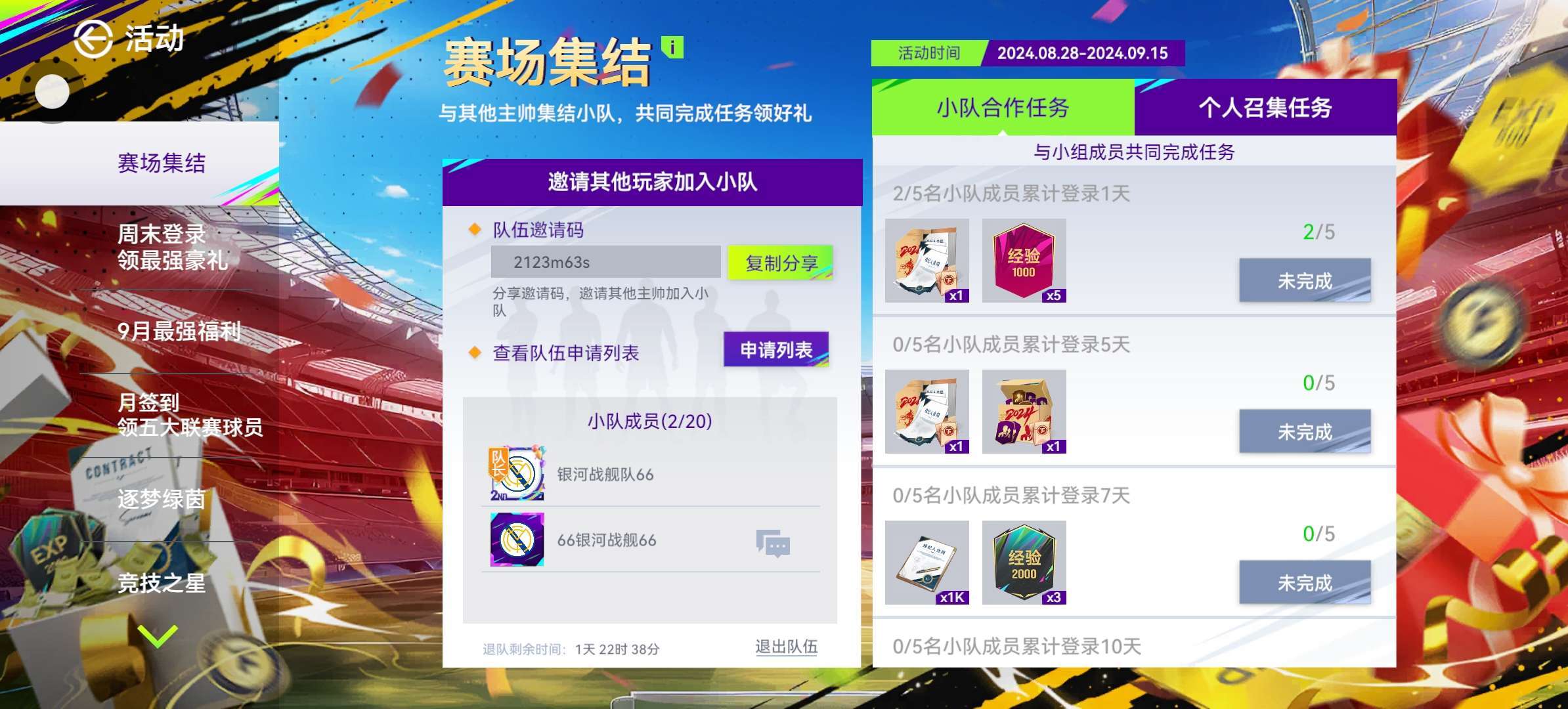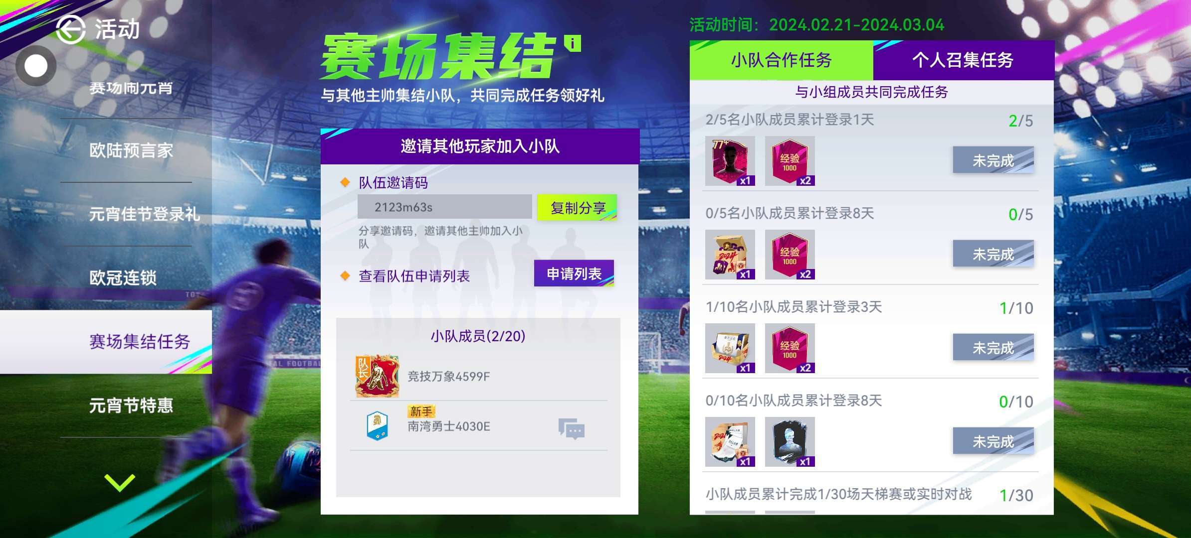 队伍邀请码:2123m63s 欢迎新人,感谢你们的加入!
