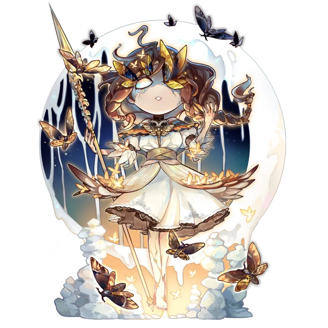 她抬手,身旁萤粉散落,飞蛾翩翩落于她指尖,黑暗蛰伏在美好的表象之下。