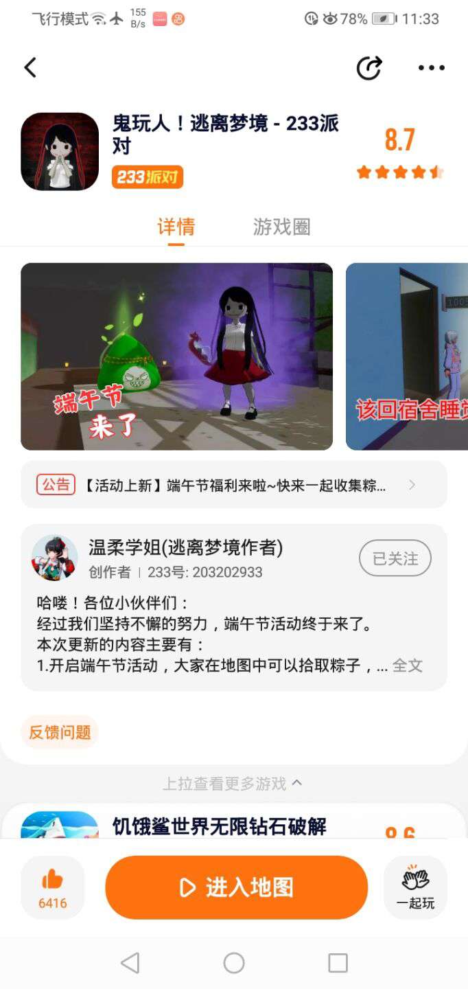 我用另外一个手机玩的鬼玩人游戏,感觉和这个手机有很大的不同,不过哪个没有看过真人。匹配时间还有点快
