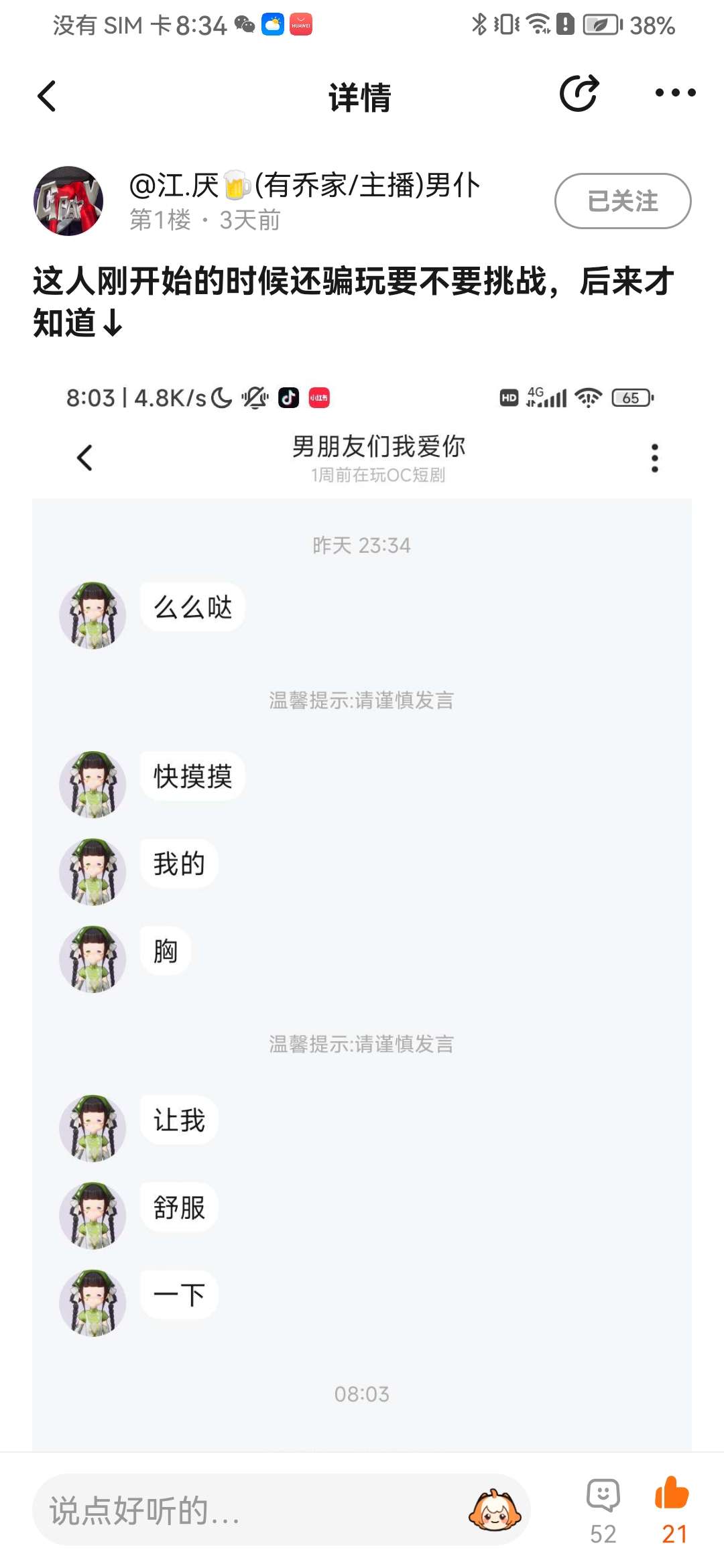请看,非常恶心,自请观看 一直从那里说说说,还有一些都没有截图 我真不知道,怎么有这种人?