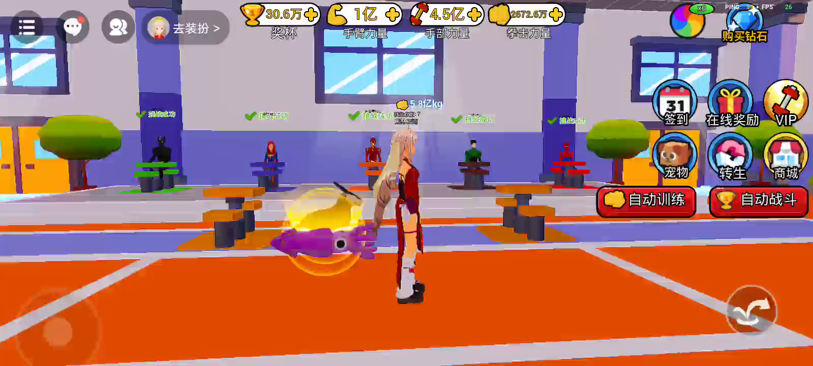 欢迎来到 掰手腕模拟器! 新增[PVP]模式,约上你的小伙伴比一比谁更厉害吧! 使用健身器材锻炼身体! 与更多 BOSS 进行比赛战斗,获得胜利! 收集宠物并前往新的健身房!