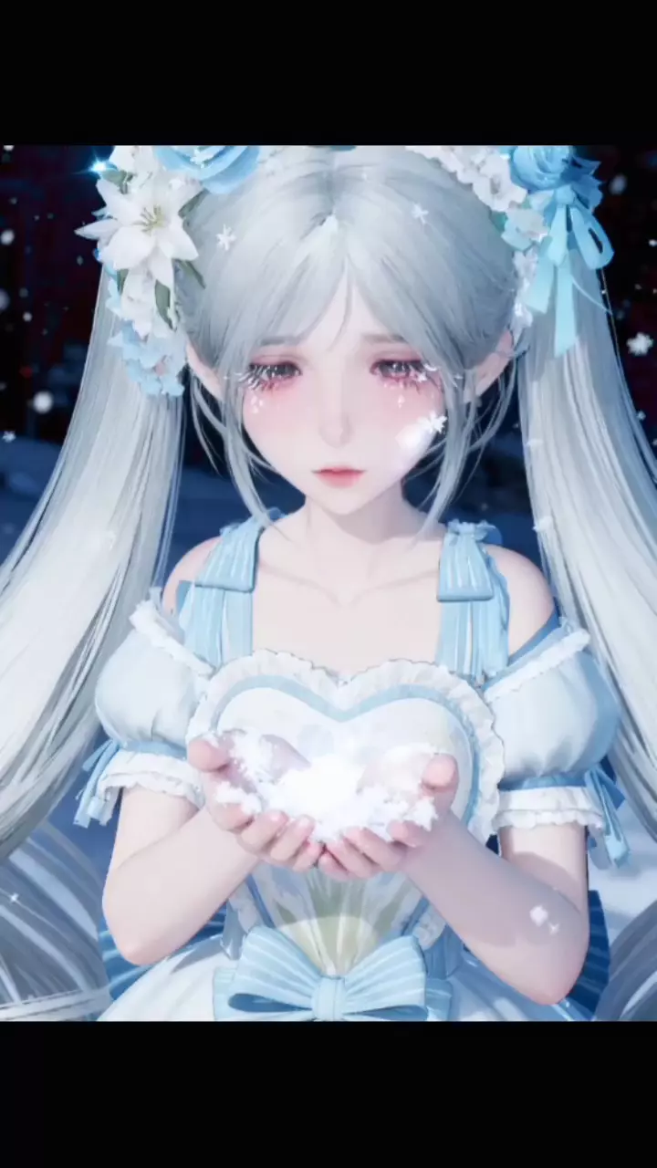 捧着雪花坐在雪地上