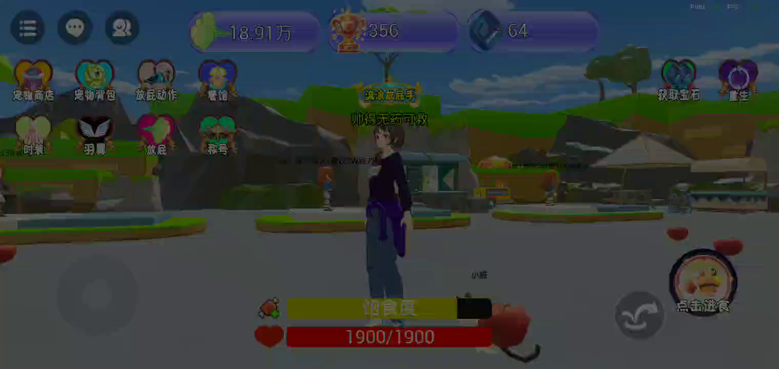 食用食物增加你的放屁威力! 每秒都会增加你的屁力! 挑战各种NPC获得奖杯,升级萌宠......