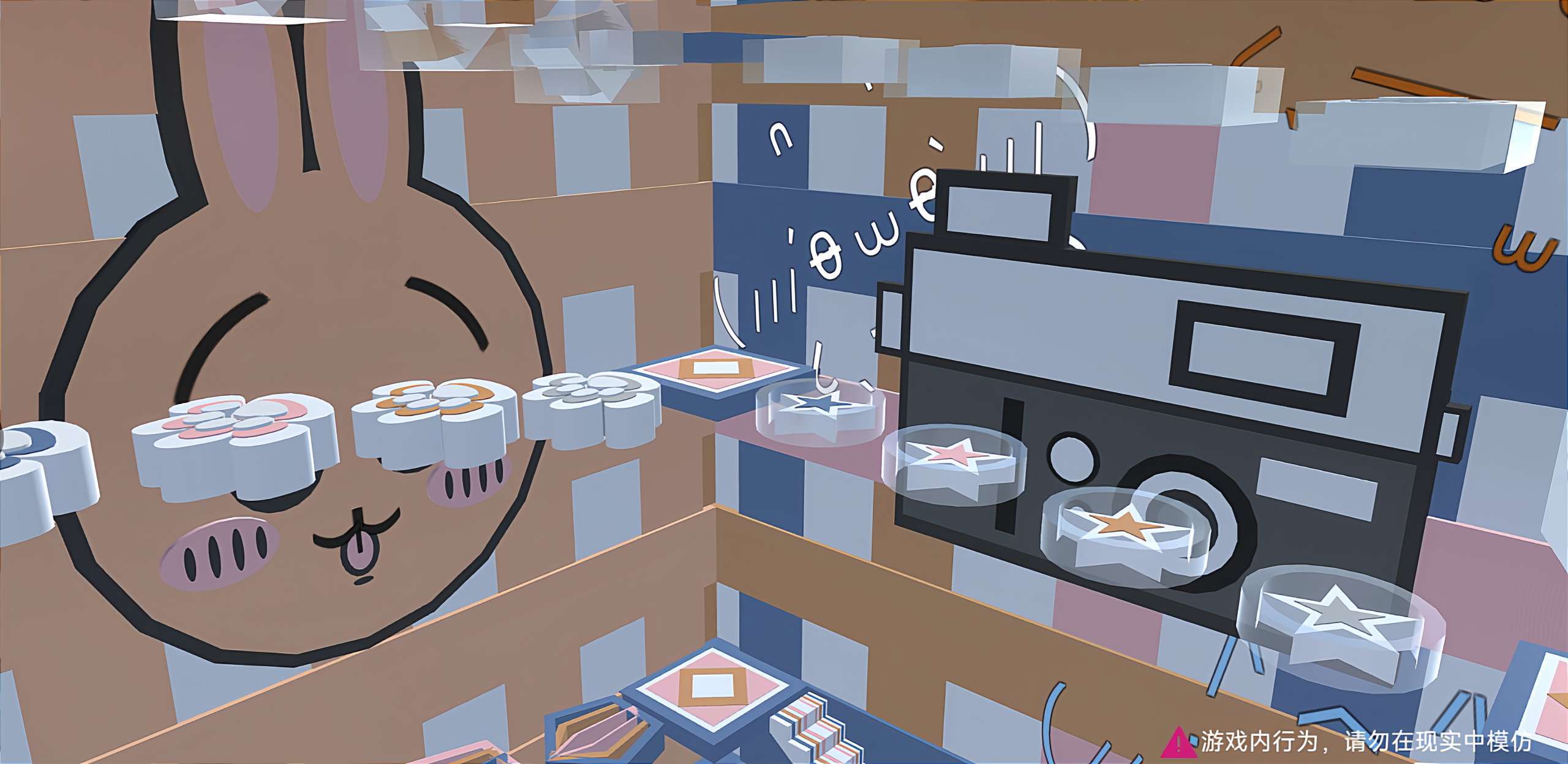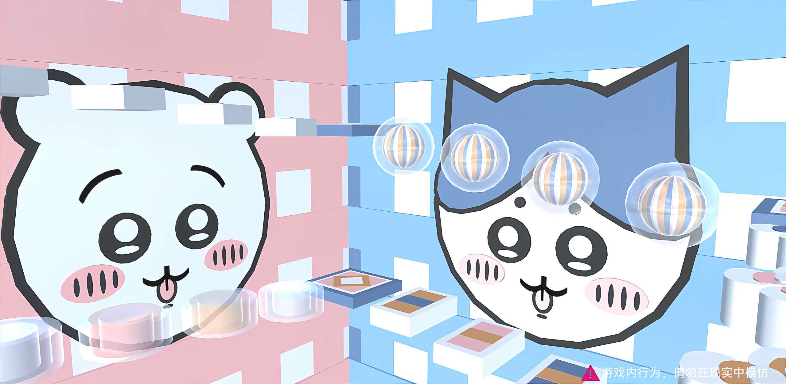 🌈颜色搭配也是刚好 跑酷内容比较简单 楼梯那里可能会挡到吉伊 所以就建窄了一些 欢迎贝贝们打卡‼️三小只也已经尽力还原了😌👌(感觉比例有点怪)