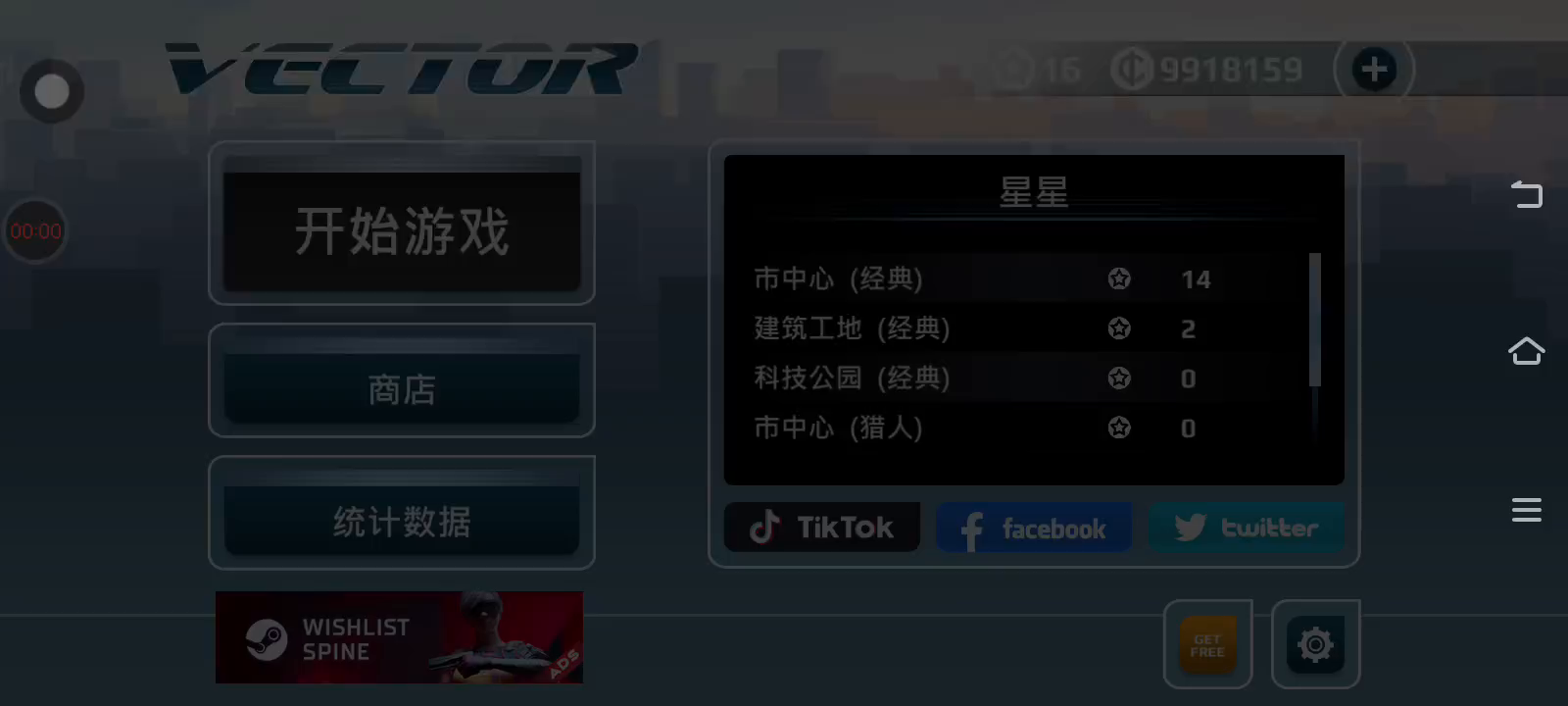 修改金钱为无限个 【注意】游戏右下角齿轮设置-Language一栏点击可以设置简体中文! 《矢量跑酷 Vector》是由Nekki制作的一款全新跑酷游戏。游戏的灵感来源于乔治奥威尔的经典反乌托邦小说1984,游戏中的Big Brother是一位独裁统治者,主角是被他所奴役并洗脑的居民之一,在后期醒悟了过来并开始了逃离乌托邦之旅。 该作继承了Nekki所惯用的阴影剪影效果,华丽的背景画面和跑酷动作是本作的一大看点。游戏中玩家要控制角色逃离一个极权主义世界,你可以跑、跳、攀爬,像跑酷游戏一样,有着丰富的动作要素和场景障碍。本作的游戏手感偏真实系,厂商表示这些完全是通过细致的动画完成,并没有使用动作捕捉技术,使得游戏风格非常独特。