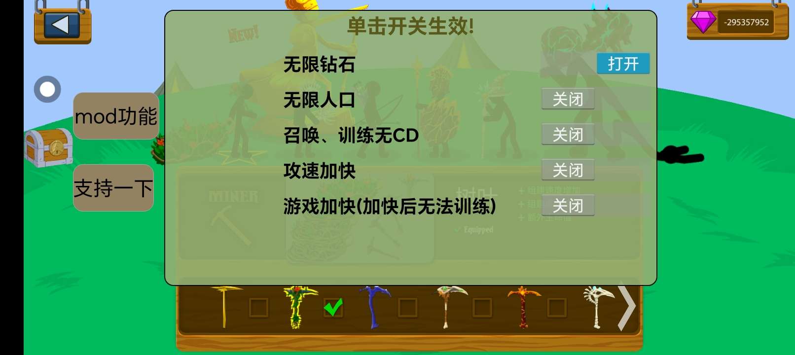 问一下为什么我开了无限钻石,但是还是没有钻石?也买不了道具。