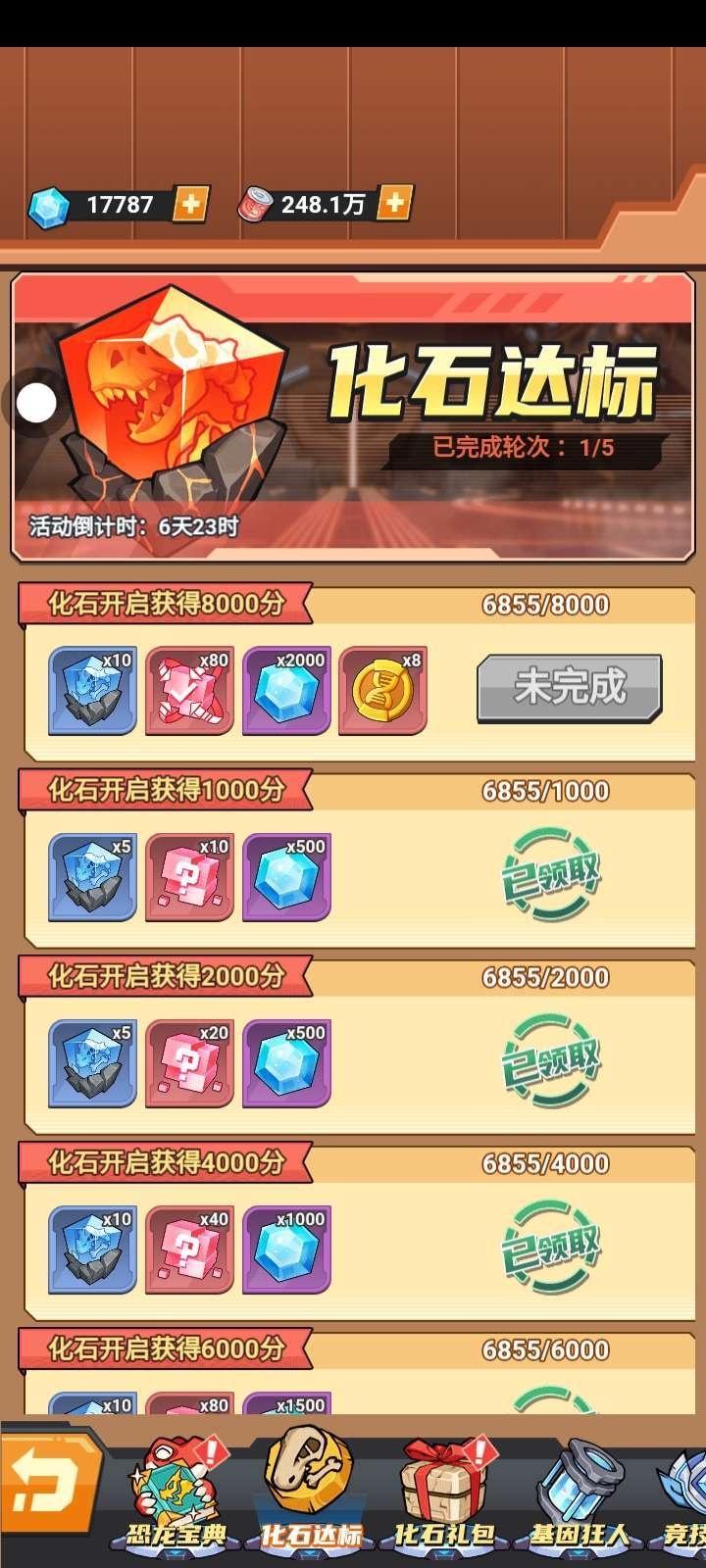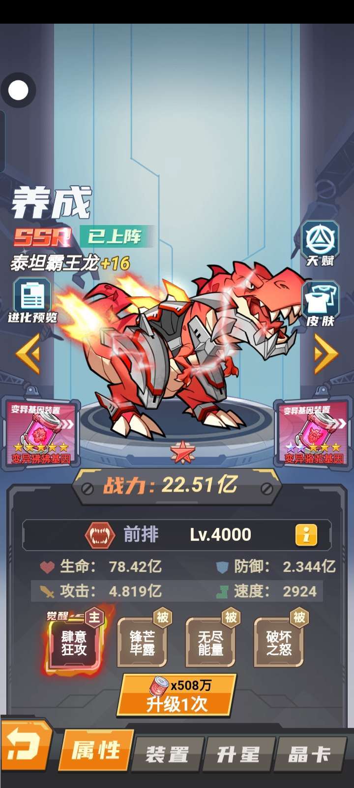 好缺基因药剂,5个恐龙都很缺。