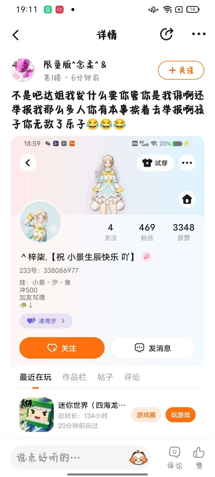 哈哈,那五个取关的人,你别让我找出来,否则45小号举报