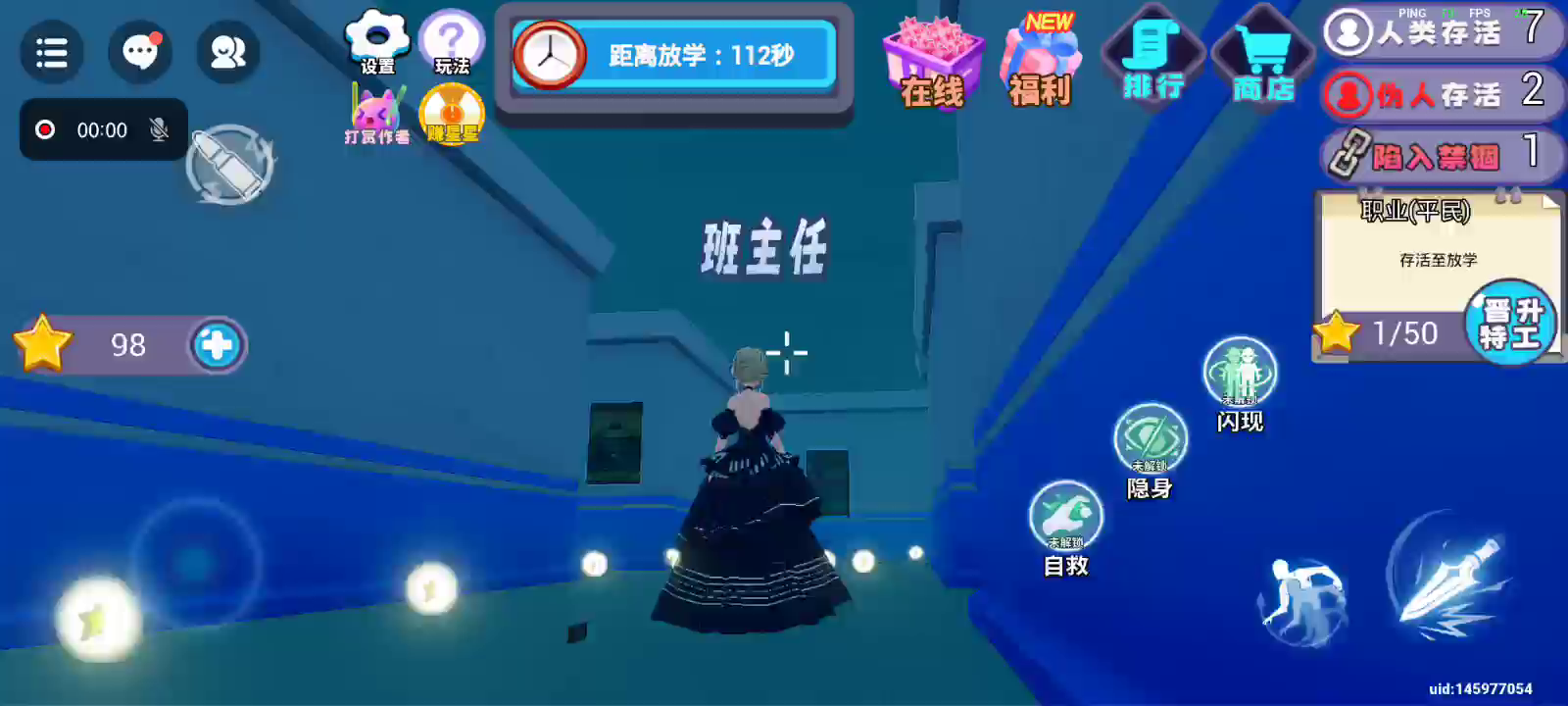 规则怪谈学校混入了一名怪物杀手,拾取星星升级成为特工可获得武器,找出伪人杀手挑战他,在战斗中击败他即可获得胜利。多拾取星星可获得移速成长升属性。或者坚持到放学逃离学校也可以获得胜利,躲猫猫排行榜上有你的传说吗?