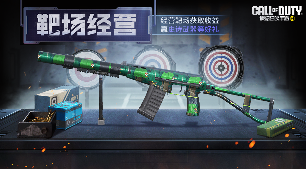 6月21日(下周五),靶场经营玩法正式上线。战士们完成每日任务,升级靶场就能获得更高的靶场收益,而达到一定的收益就可以兑换史诗级武器:AS VAL-宝藏猎人,以及歼灭者-丛林光影、折叠刀-丛林光影、背包-呱呱乐园等精美的里程碑奖励啦!