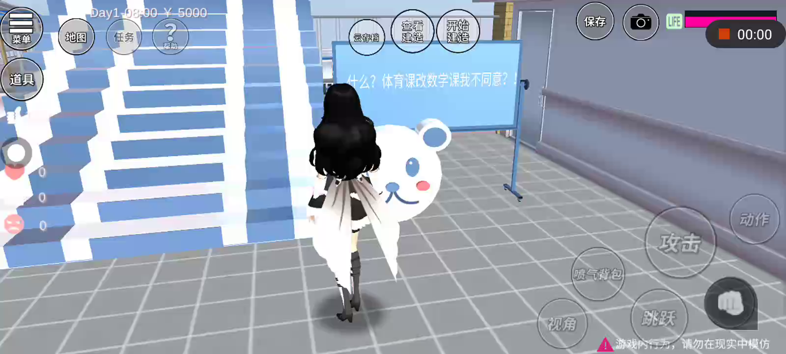 @樱花校园模拟器@蓝色跑酷@逃离占课跑酷
