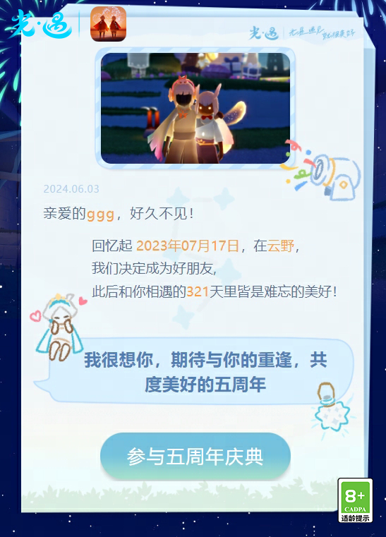 《光·遇》五周年嘉年华庆典:6月21日00:00~7月14日23:59
