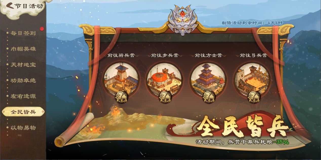 活动期间,兵营中募兵可减少粮耗