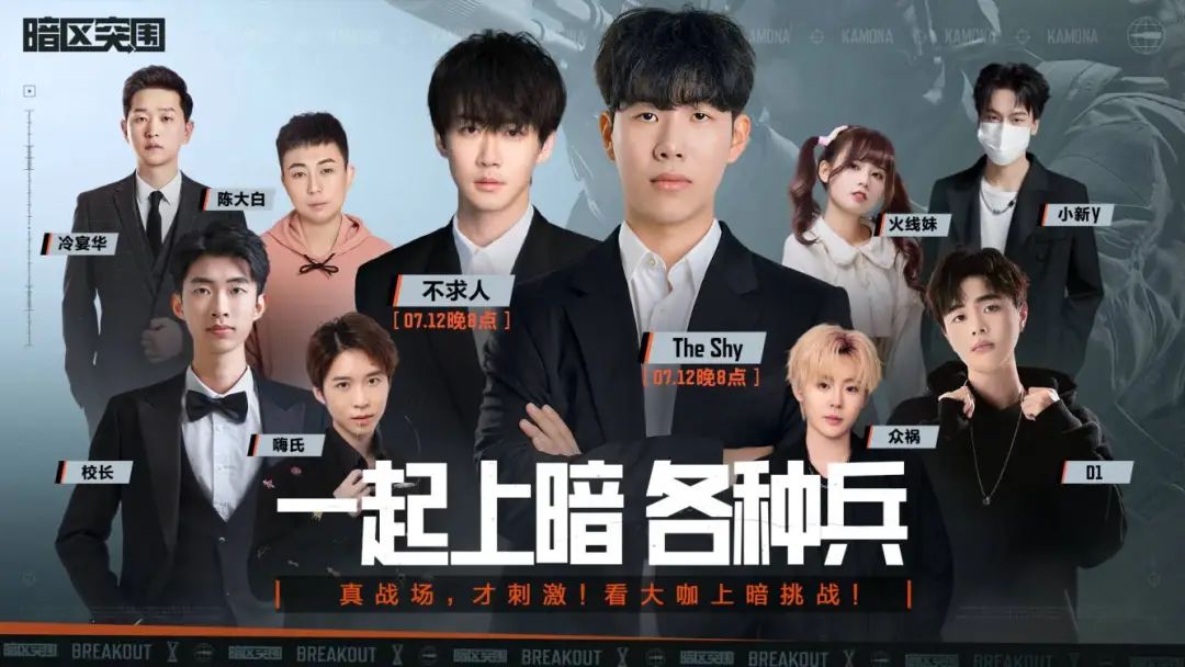 刺激不要停!刺激上暗杯全明星赛段将在7月12日正式开启,The Shy、不求人将带头上暗,与暗区主播共同组成全明星战队,诸多大家熟悉的fps高手也会共同出战,为各位先锋带来一场激情四溢的竞技对抗!先锋上暗,谁主沉浮?