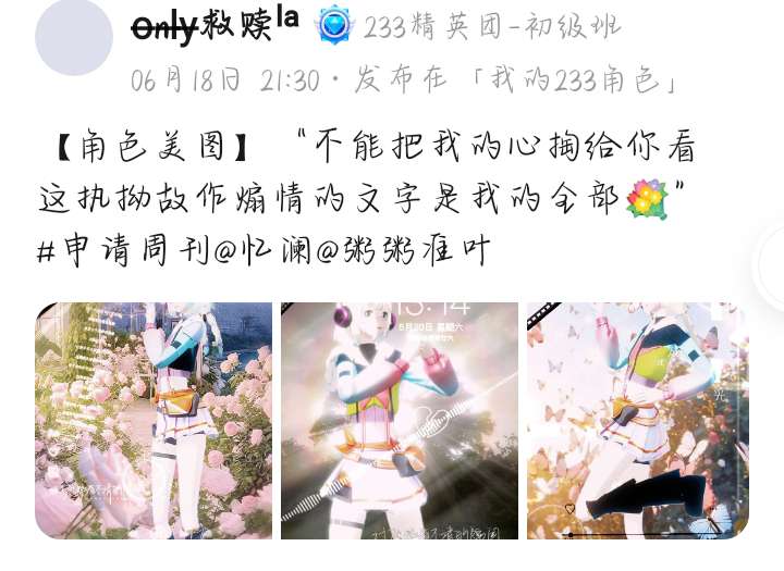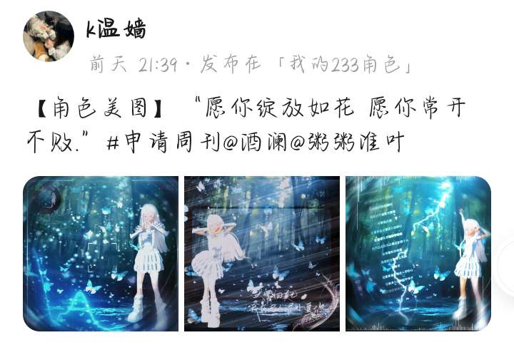 哈喽,各位233角色的小伙伴们,我是粥粥淮叶,不知不觉我们又度过了一周,不知道在上一周的你,有没有在游戏圈分享你的所见所闻呢?本次我挑选了几个优质作品,让我们来看看这些优秀小伙伴的创作内容吧!