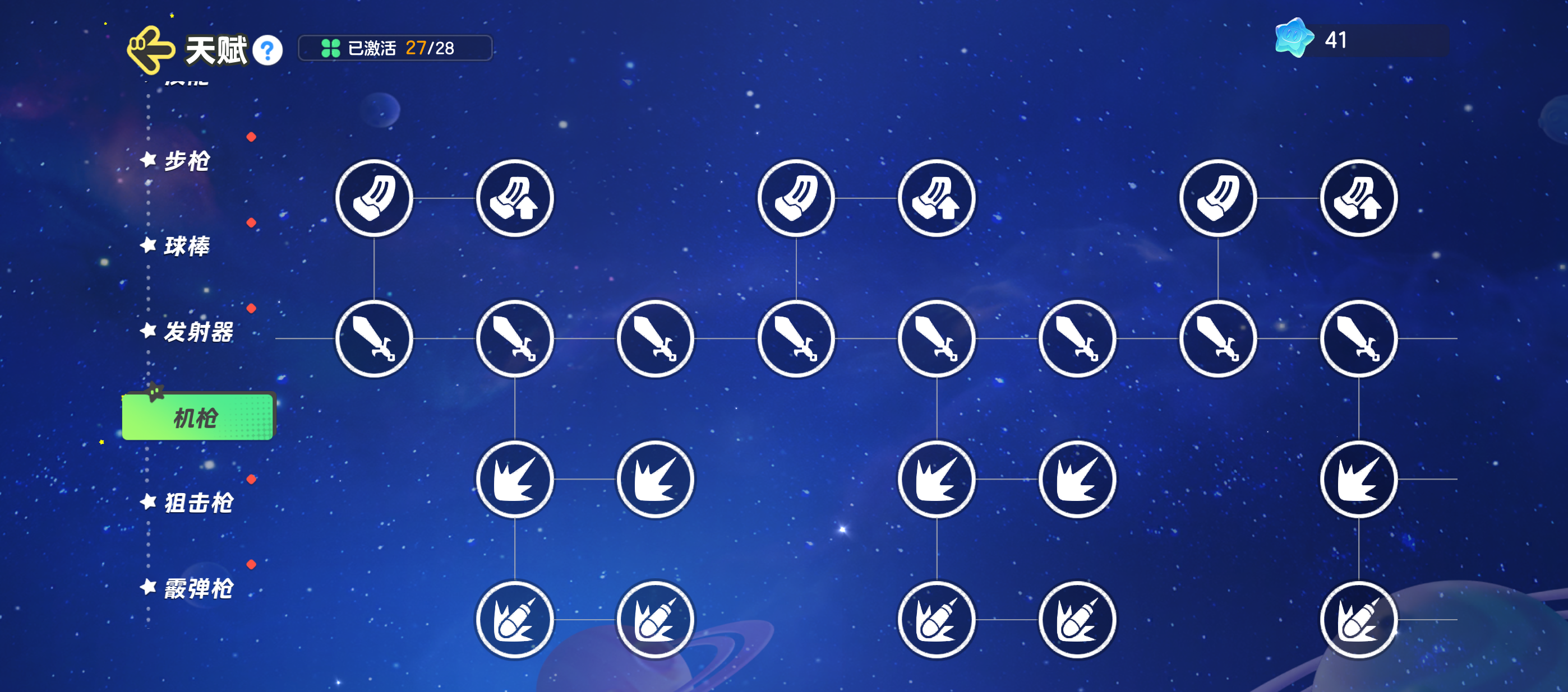 军械整备好,怪物阵亡早,既然星宝们选择了机枪,就能凭借超多子弹,无压力输出,在天赋中优先点满机枪相关天赋,进一步提高机枪输出!