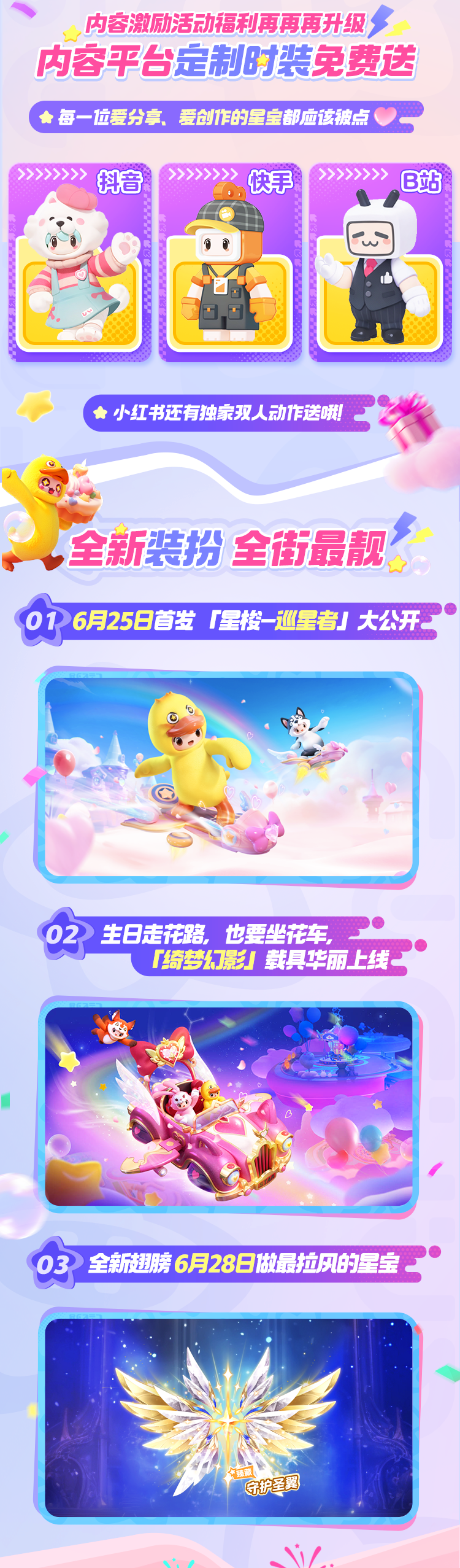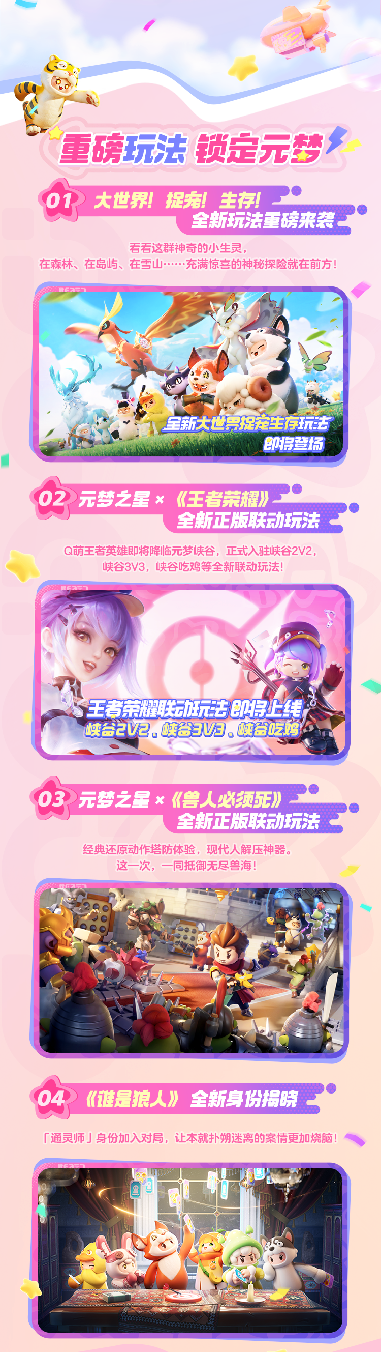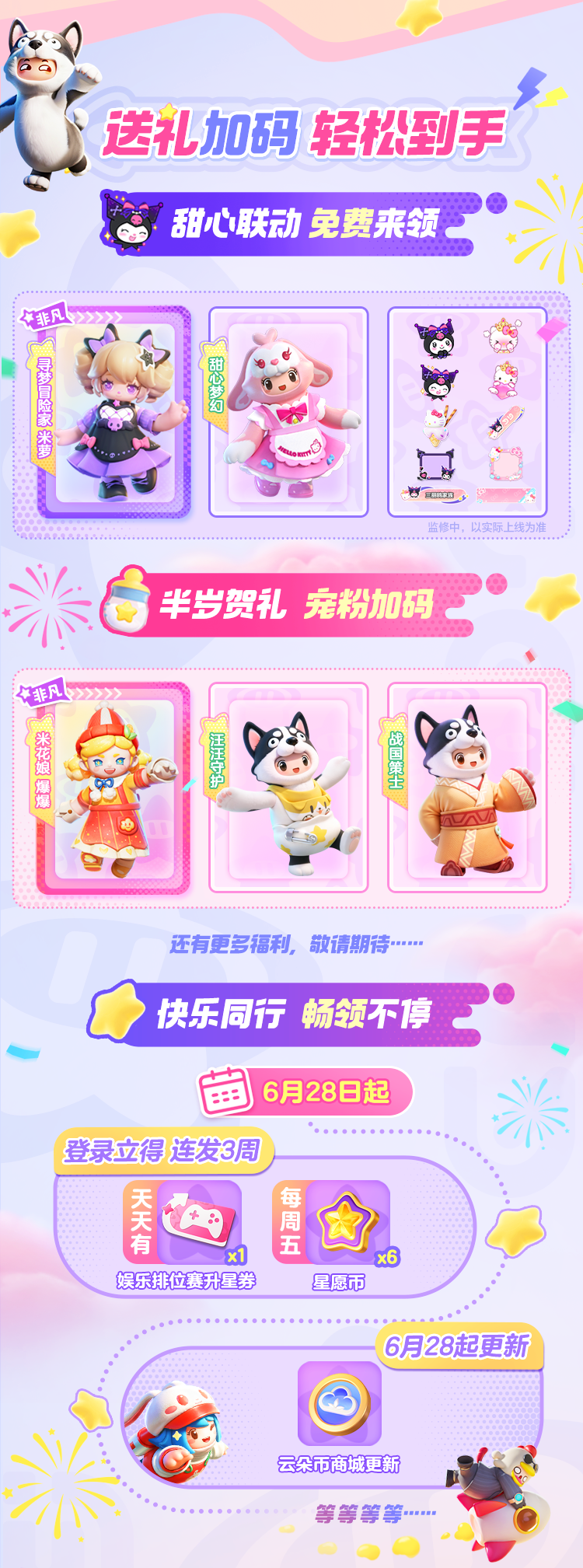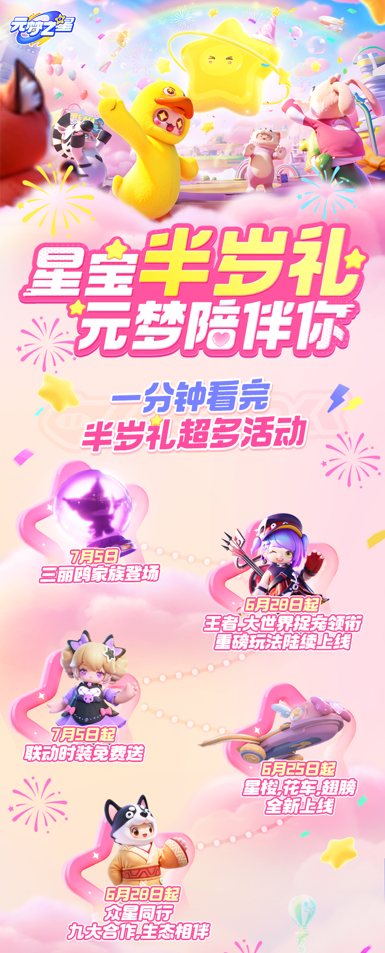 又被元梦之星硬控了!星宝们最期待的三丽鸥家族联动、王者荣耀联动玩法、萌宠世界共创玩法统统都来啦!!还有超多福利拿到手软~