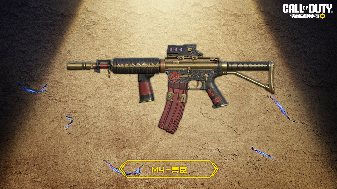 M4-弄臣拥有黑金色的枪身,并用精致的花纹展现自己的身份。握把和弹匣处采用了深红配色,凸显出这把武器阴沉、危险的气息!