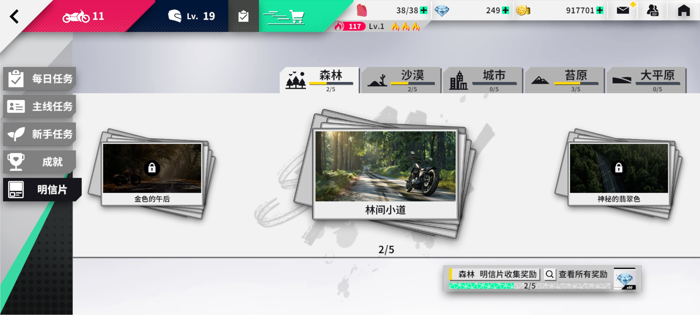 每个场景都有相应的明信片图鉴,在任务界面中可查看所有已收集和未收集的明信片,每个场景的明信片收集完成后都可以获得奖励,快去各个场景打卡,达成全收录吧!
