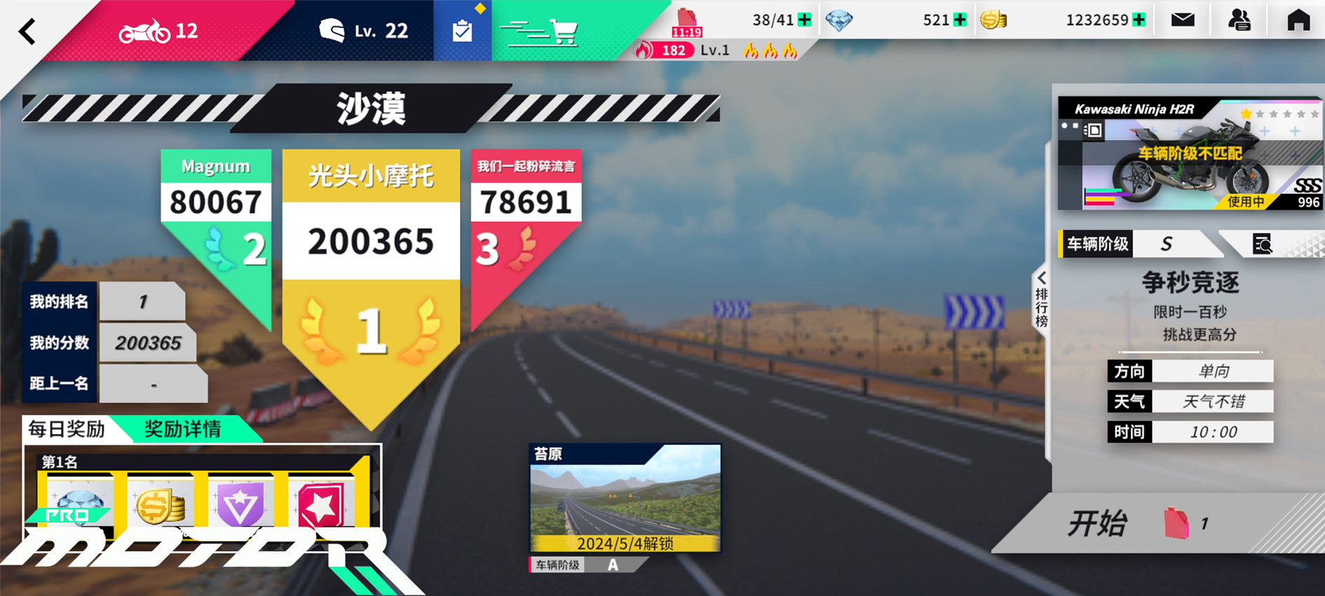 排行榜单上会取每个玩家当期完成的比赛中最高的一轮得分记录上榜。如果你的分数一骑绝尘,顺利拿到了前三名的好名次,那么你的名号会展示在争秒竞逐界面内的醒目位置,成为其他骑士追逐和仰望的目标!