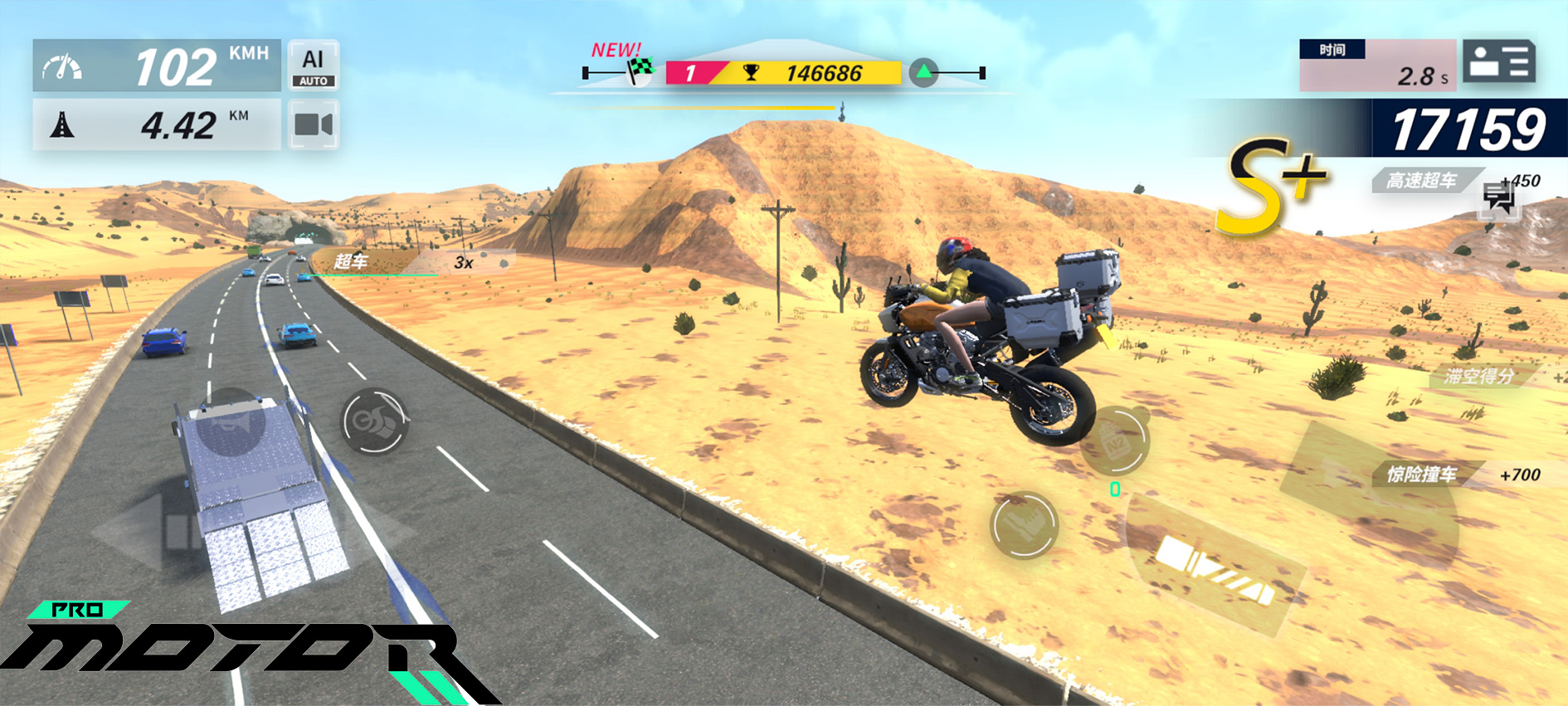 分数的获取条件都需要考验骑士们的控车能力,例如:贴身超车、飞跃、氮气加速、甩尾、抬车头驾驶、持续高速驾驶等等。