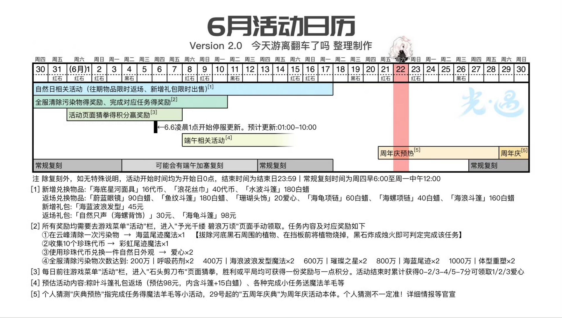 办公室屋顶周年庆预热魔法:5款气球帽子、电吉他、奥利奥。此外还出售气球帽子魔法、彩带围脖魔法和共享空间魔法 𝟮.周年庆预热已开始,办公室屋顶出现舞台布景,可从云巢礼物商铺直达。往年物品开始返场,新增物品、正式活动要等29号。 𝟯.筑巢工坊家具柜台已刷新,距离下次刷新还有4天。本周家具:洗手台、带盖方盒、壁挂厨具套装、菱格中地毯 𝟯.筑巢季季节任务四已开放