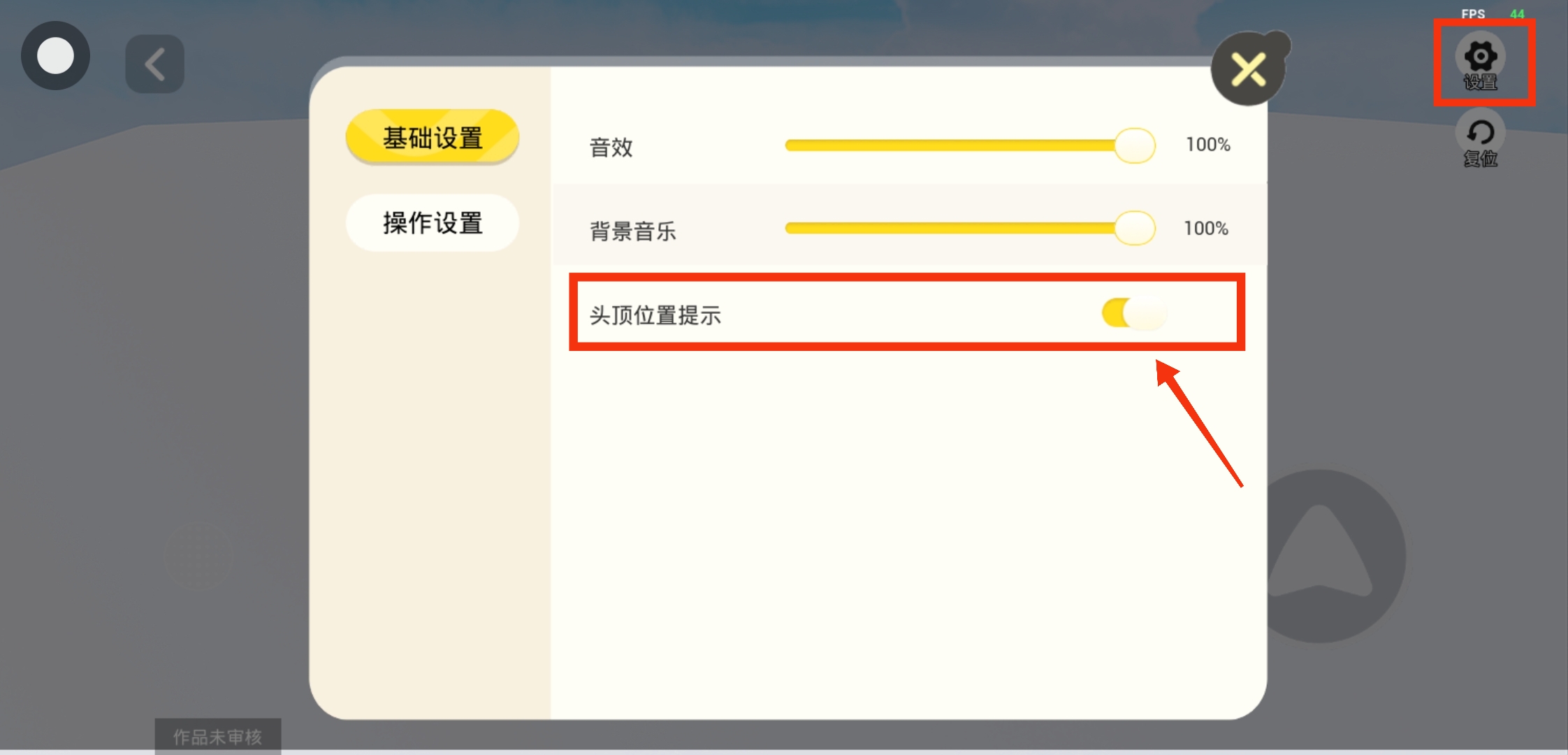在试玩或游玩时,可以在右上方【设置】-【基础设置】,选择是否关闭头顶位置提示哦~