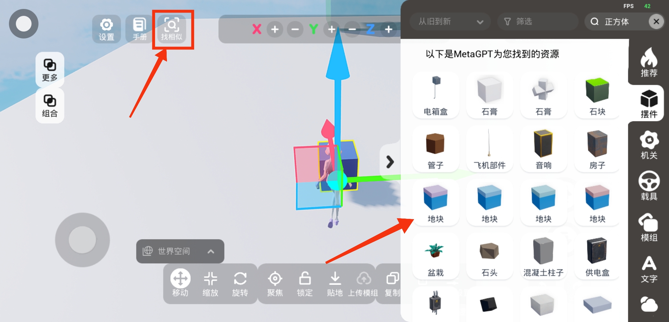 选中物体,然后在左上方点击【找相似】按钮,即可在左侧的资源库界面显示为你找到的所有相似资源哦~
