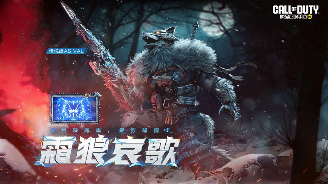 当传说级武器:AS VAL-霜狼哀歌击中敌人,对手的身体仿佛被狼人撕咬,属于狼人的徽记呈现出冰蓝色的光芒,在战场中一闪而过,仿佛正在宣示这片土地的主权。