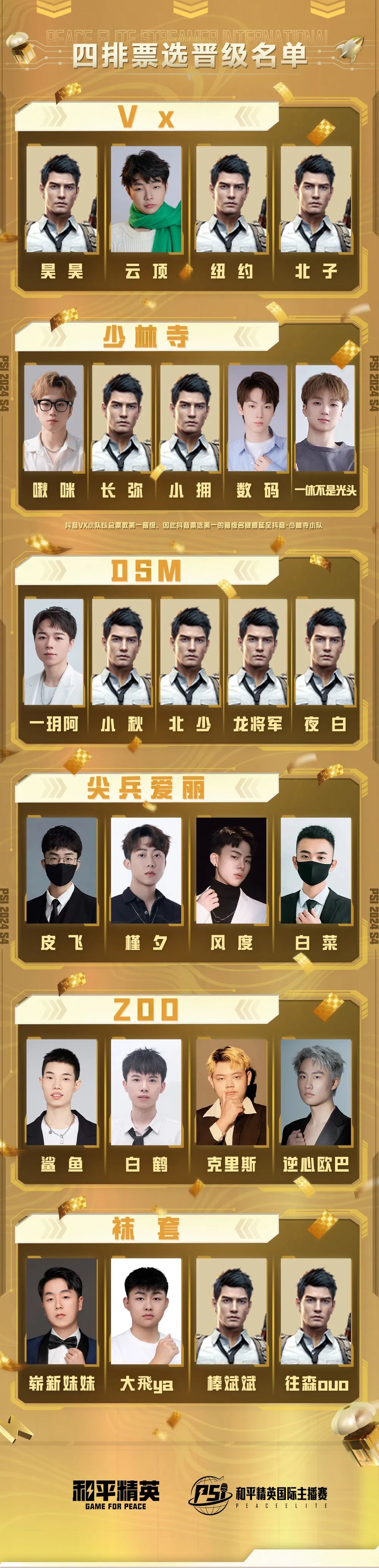 通过全明星票选晋级队伍也已锁定总决赛名额。