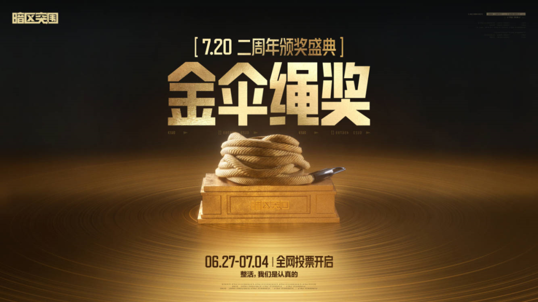 此外,再给大家小小爆料一下,暗区突围二周年颁奖典礼与首届金伞绳奖将在本月27日一并开启投票。最终盛典将在7月20日重庆线下举行,惊喜不断,奖励多多,诚邀各位先锋前来线下观看!一起见证暗区突围二周年庆典!
