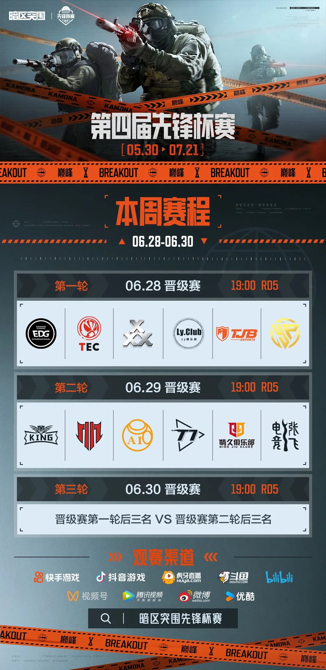 暗区突围第四届先锋杯总决赛将于重庆渝北体育馆盛大开幕。经过前四周的常规赛,本周将决出最终九支战队登上决赛舞台,激烈赛事一触即发,谁将拿下线下名额?