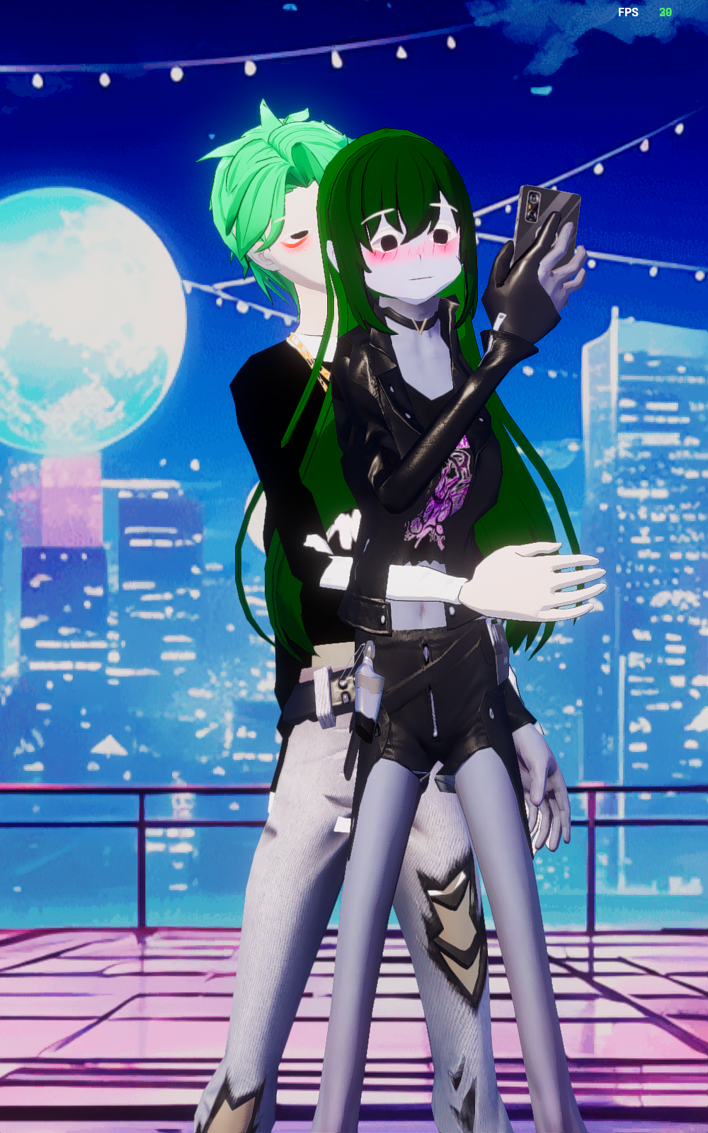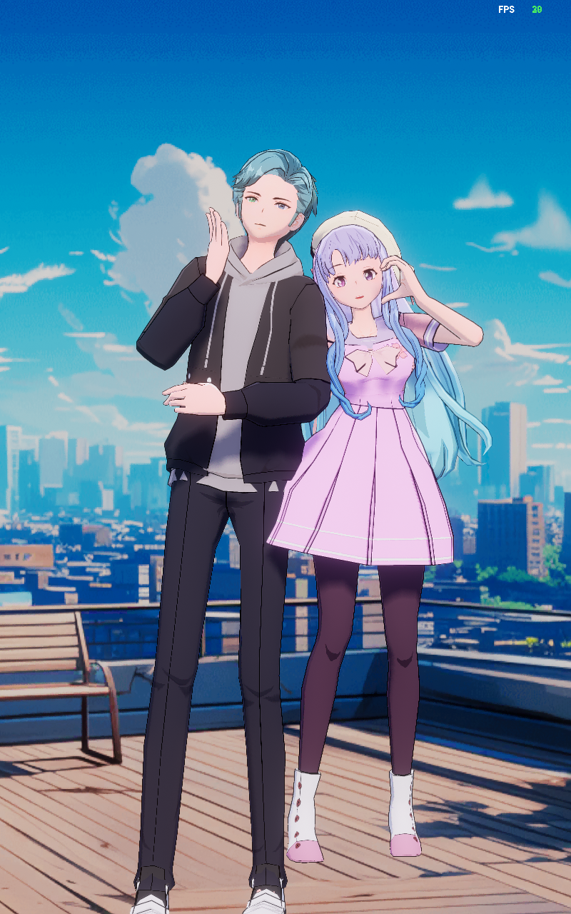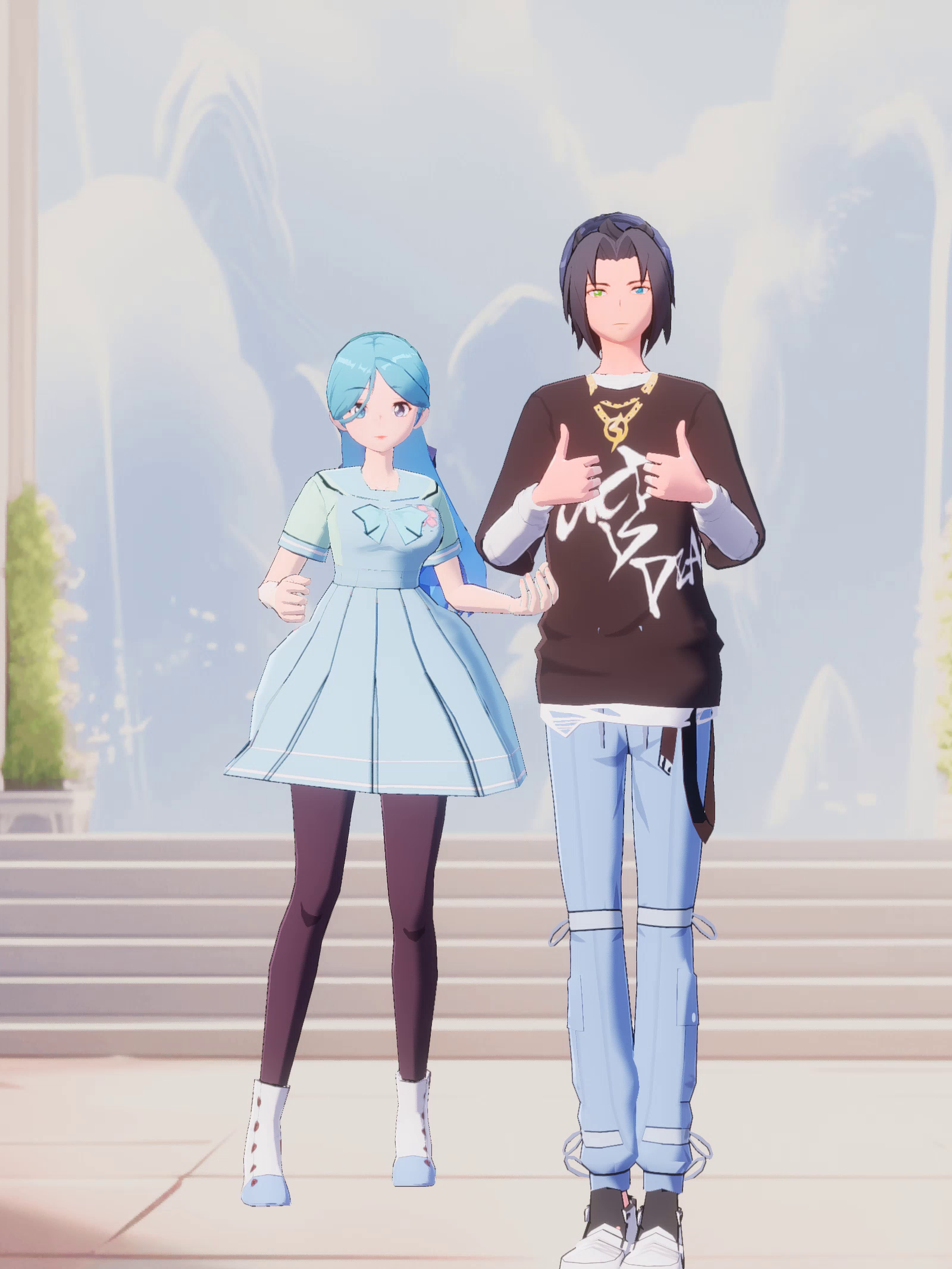 女朋友头发深绿,妹妹穿蓝衣服的(●'◡'●)