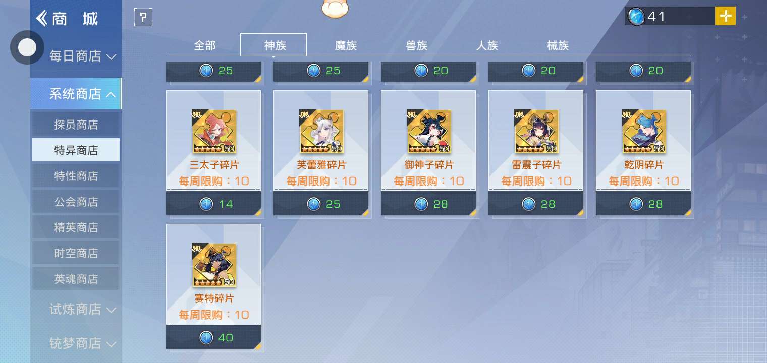 你们说我要哪个呢?神族最后三个没有,魔族和兽族最后一个没有,械族最后两个没有,人族它卖的我全有