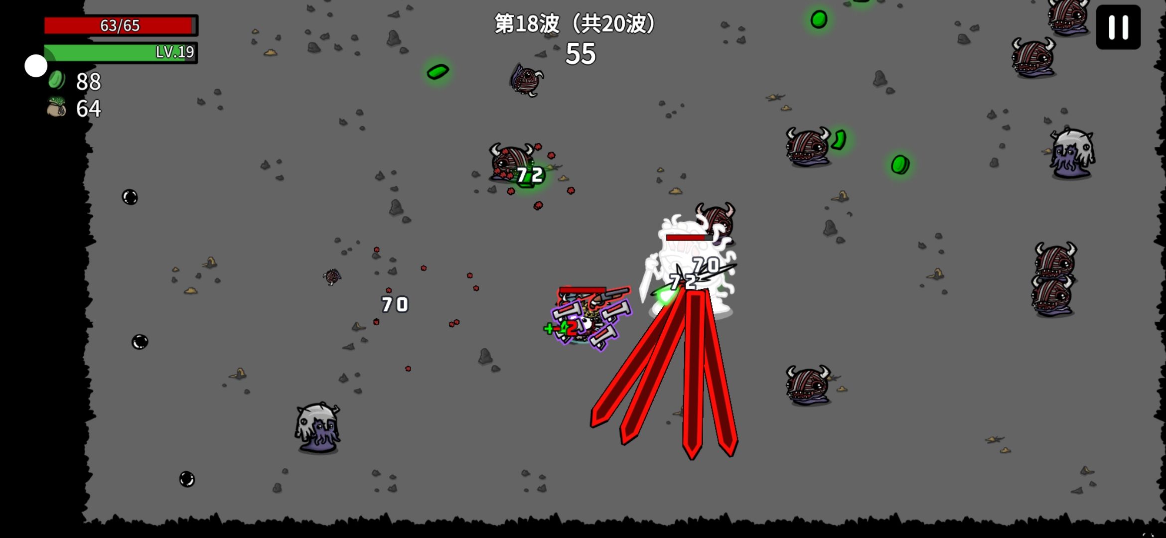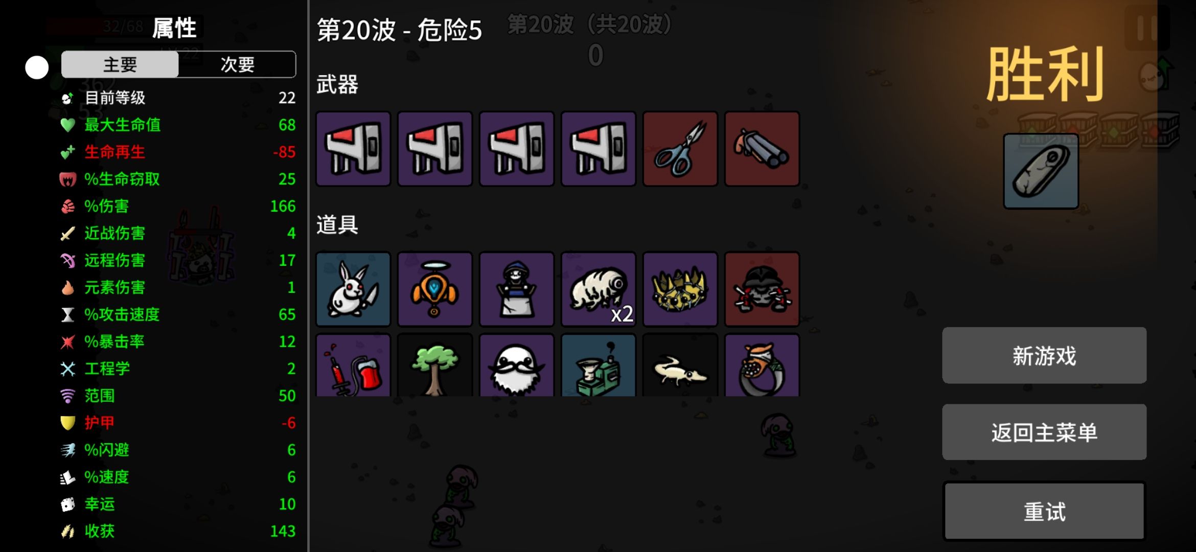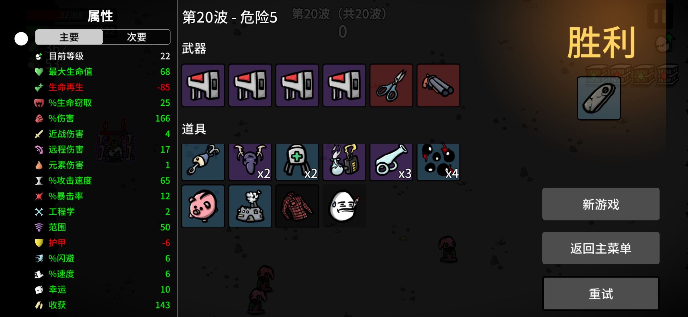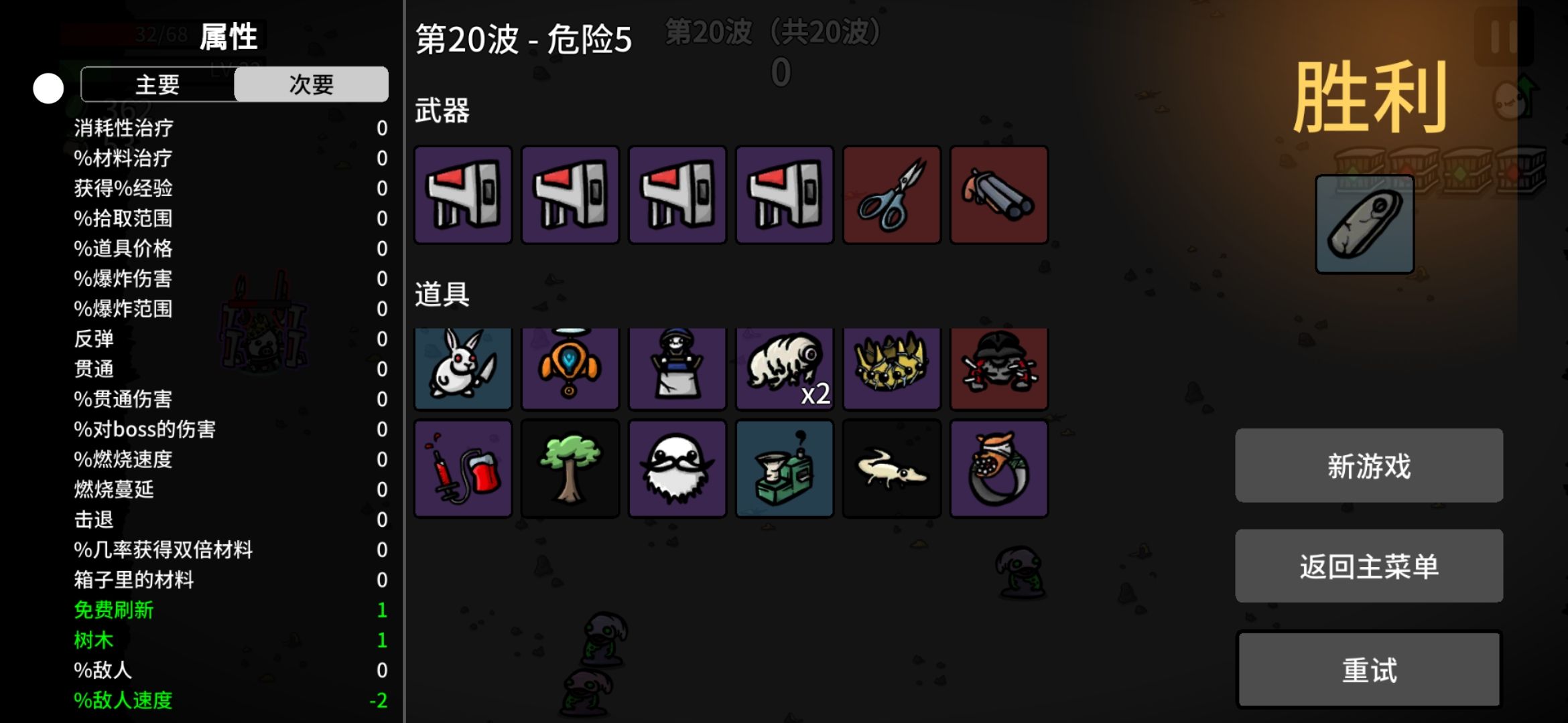 第30波,两个头目,一个精英怪都打过了 ,但是第35波 ,三个犀牛怪,碰我一下就没了 !