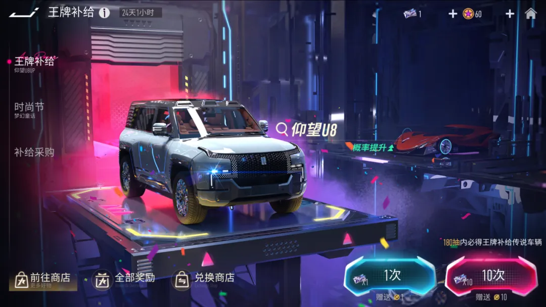 前卫硬朗,势不可挡!6月7日起,王牌补给将开启全新活动!传说车辆『仰望U8』限时概率提升66%!